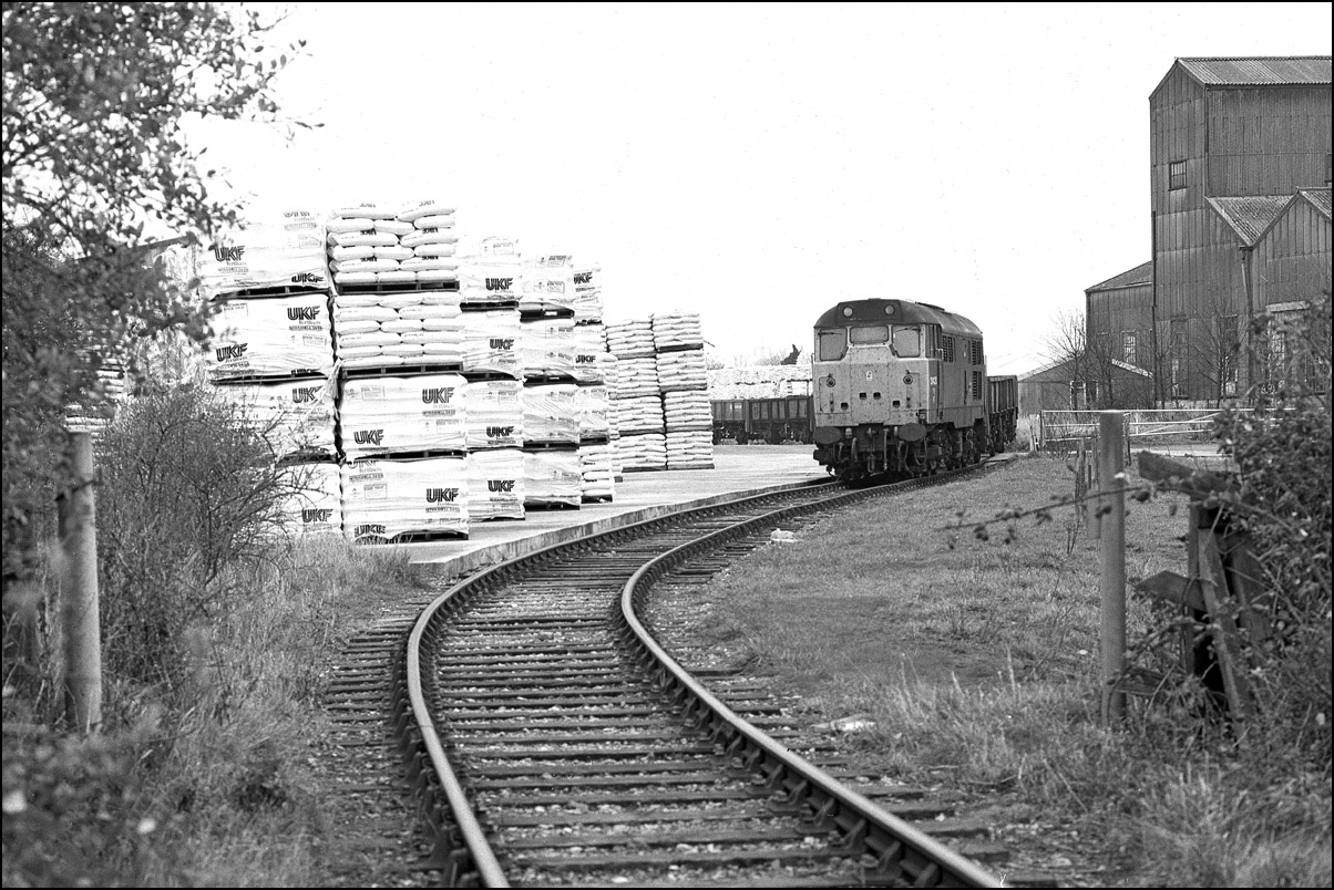 wagons out of the headshunt. On this occasion, 11 November 1989, the load was not palletised and the bags of fertiliser were individually lifted out by forklift truck.