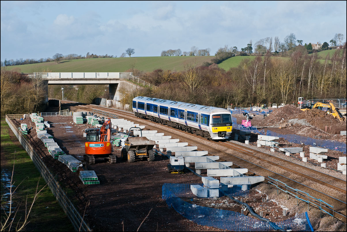 Work on the new Stratford-upon-Avon Parkway station is continuing with progress on both the up and down sides of the line. This scene is from Monday 10 December 2012 amd shows 168002 passing the site with the 09.10 from Londson Marylebone. A lot of