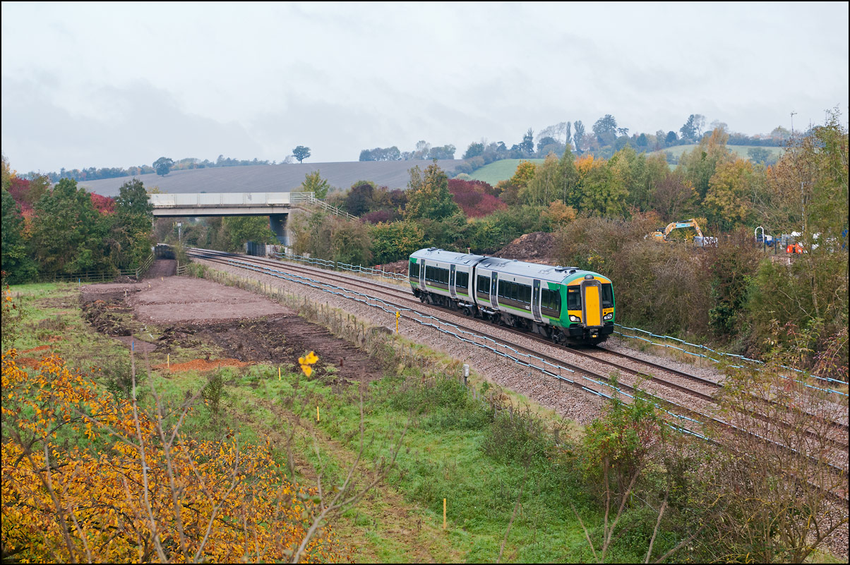 equivalent to about 105mm in 35mm terms, and there is quite a gap between the bush on the extreme right foreground and the roadbridge adjacent to which I am standing. I imagine that more site clearance will take place as work progresses. The train here shown