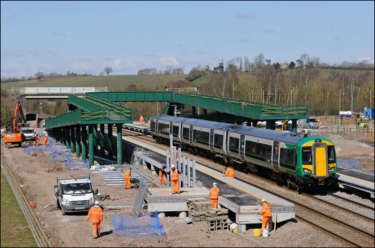 disabled in mind and includes reasonably shallow ramps along with the usual steps for everyone else. The construction work is running well ahead of schedule and the first train is expected to call at the station on Sunday 19 May. This picture taken on 2 April 2013 shows 172342 passing the station with 2S30, the 10.55 from Stourbridge Junction, running a couple of minutes early after a quick trot