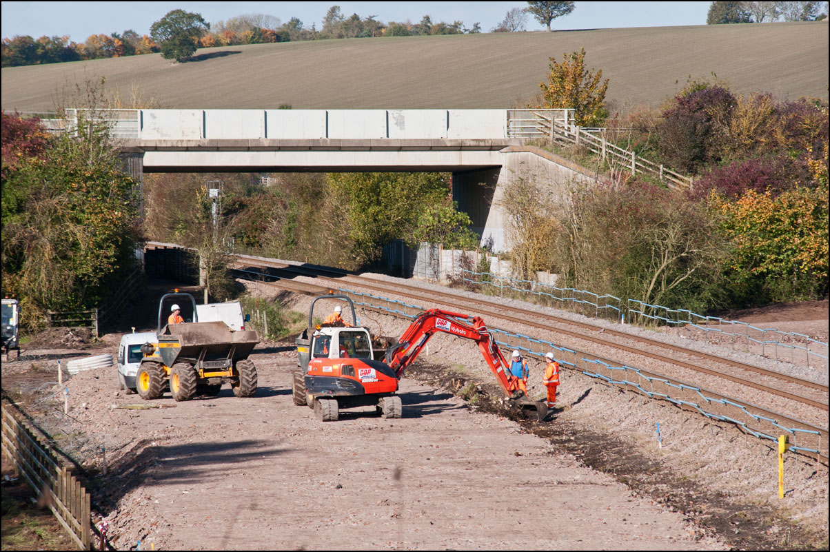 Saturday 27 October 2012 was bright and sunny and with nothing of any interest around on the local main lines I has another walk up to Bishopton to see what progress had been made during the past week to the new Stratford-upon-Avon Parkway station. Much more clearance of undergrowth had taken place and it looked as if