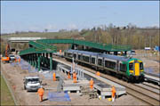and access steps for permanent way staff. This photograph was taken on Saturday 20 April 2013 as 172334 headed towards the GWR station at Stratford with 2S30, the 10.55 from Stourbridge Junction. The station is due to open on 19 May 2013 and work is ahead of schedule at the time of writing.