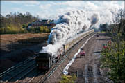 the 1/75 gradient of Wilmcote Bank, a decent show of exhaust was guaranteed on a chilly morning. From a photographic point of view the fact that the locomotives were running bunker first was unfortunate but this had been made necessary because no reversal was apparently possible at Worcester, the train's