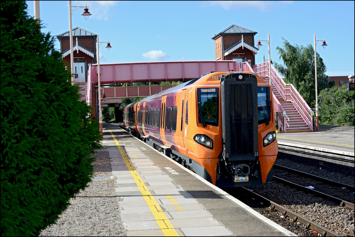 The returning ECS from Tyseley to Stratford, 5Z41, was a few minutes late leaving and was routed via Solihull and Hatton North Junction instead of the booked route though Henley in Arden. This didn't bother me too much as I had planned to go either to Wilmcote or Stratford Parkway to make sure that my photograph of 1001 was in a recognisable location rather than in open countryside; I don't really see the point in taking an unusual or one-off shot in a spot that could be anywhere in the country. Anyway, I went for the latter option as although there is an attractive footbridge at Wilmcote it is, to say the least, very well photographed and perhaps slightly clichéd. Just after I arrived at the Bishopton Lane roadbridge 172102 with an unidentified sister unit arrived for its booked stop at the station. This meant that 1001 was on the way from Bearley Junction and it soon came into view as it coasted down Wilmcote Bank, just a couple of minutes late. |