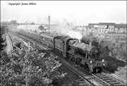I mentioned above the 1960 curve built from the SMJ to the GWR Cheltenham line. Here is 6944 Fledborough Hall on the curve having just passed through the SMJ's Old Town station. Despite the limitations of a single track railway from Fenny Compton to Stratford-upon-Avon, this spur was heavily used for some 5 years after it was built. The route had value in that the stiff climb of Hatton Bank was avoided for northbound trains and it offered a more direct line for the iron ore trains from Banbury to South Wales. It was also valuable for any trains from the Oxford line needing access to the Cheltenham line as there was no direct connection between the two at Honeybourne. Any train running from Oxford to Cheltenham via Honeybourne would have had to make a long propelling move of almost a mile from Honeybourne station along the East Loop so that the locomotive was clear of the points by the East Loop signalbox. The train was then able to be routed over the junction to gain access to the Cheltenham line. The was clearly a procedure fraught with difficulty and which had the potential to cause delays and which was avoided by running from Fenny Compton to Stratford via the SMJ and the new spur. Michael Mensing |