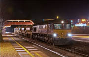A couple of engineering trains were scheduled to visit the station at Stratford-upon-Avon during the week commencing 10 February 2013. The first of these was 6P50, the 19.52 from Bescot to Bearley Junction where an overnight possession was in force. The train, with 66161 in charge, arrived at the terminus a few minutes early at 21.41 as soon as the final London Midland service of the day had left. It ran into platform 2 and once the locomotive had run round its load of five autoballasters I had plenty of opportunities for some time exposures. The relatively new station lights at Stratford are quite bright so very long exposures are not necessary but there are a lot of extraneous light sources, most noticeably the lamp-post apparently growing on the roof of 66161! |