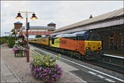 As soon as 47805 had stopped in platform 3 at Stratford-upon-Avon on 16 July 2018 the diesel engine was stopped and the four man crew alighted and took a few photographs of their locomotive before walking under the nearby road bridge to inspect the headshunt and locomotive release points. The locomotive has also carried Virgin and DRS colour schemes and has been to Long Marston on several occasions. |