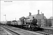 Turning around from the photograph of Sweeney Hall at the top of the section, this shot saw 4980 Wrottesley Hall approaching the station with the 10.35 Paignton to Wolverhampton train on 16 August 1958. Stratford's prairie tank 5163 has reversed out of the headshunt adjacent to the East signalbox and once the Halls's train has cleared the pointwork it will buffer up to the rear coach and bank it to Wilmcote. Thos area just south of the station was locally known as "The Cutting" and several footpaths straddled the line, all of which were regularly blocked when a long freight was held outside the station or made to reverse into the refuge siding. It was not unknown for impatient walkers to literally risk life and limb by attempting to cross the line by clambering between wagons. Brian Morrison |