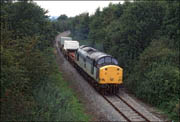 Here is one of the re-engined class 37/9 locomotives, 37902, at Whitacre Junction on 13 May 1992. The first section of the train was a rake of scrap wagons from March heading for Margam in South Wales.