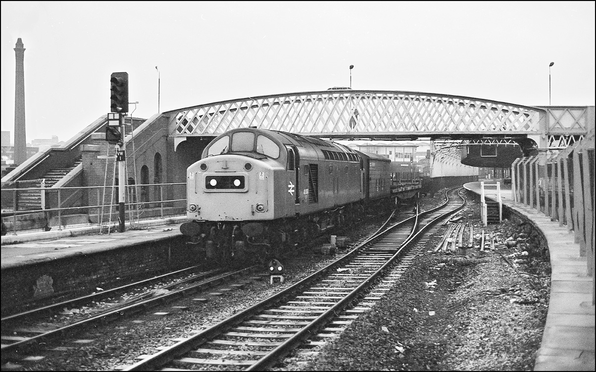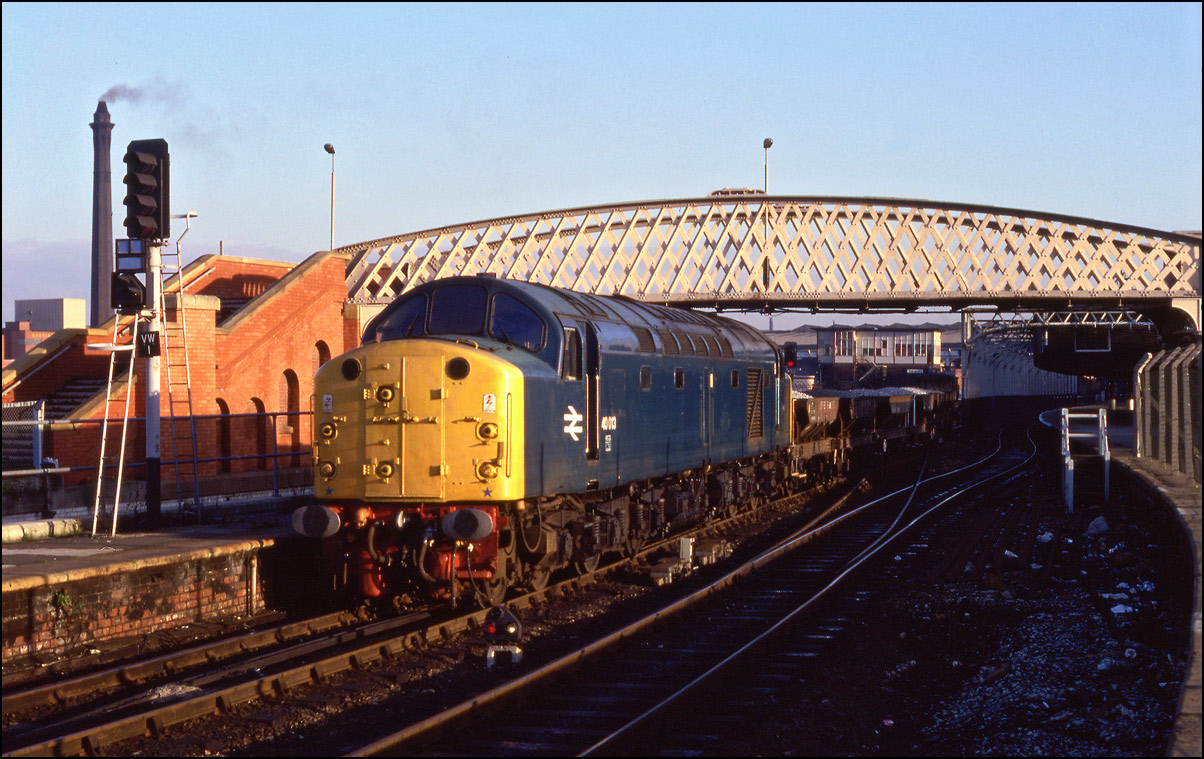 Not long before 40168 ran through Manchester Exchange on 1 November 1984, 40118 arrived at Victoria station with 2J32 from Blackpool. Earlier in the day it had left Manchester with to Blackpool in somewhat better light. |