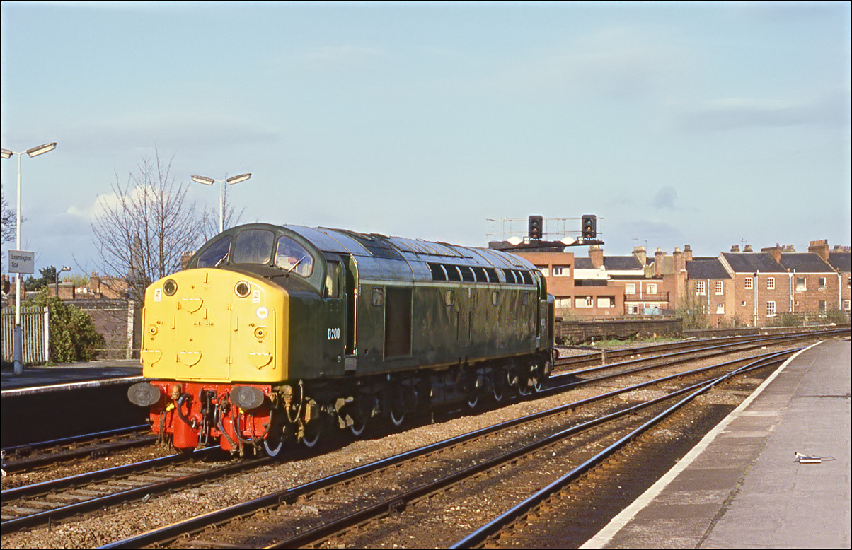 I mentioned above that D200 worked several railtours and here it is on a such a duty 2 days before the shot shown above was taken. This one was shot at Longbridge as it worked 1Z37 from Crewe to Cardiff, Barry and Oakdale, the Conway Valley Explorer. The light was dreadful but I would much rather have this poorly lit image of the locomotive and train than none; and use the philosophy today. Not all interesting trains run in sunshine. |