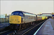 the train would have reversed and probably taken over by a class 47 for the onward journey to Poole. My slide mount noted that this was final such working for class 45 and I guess that