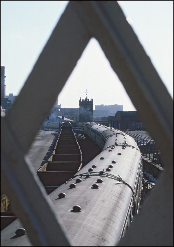 The first of a couple of attempts at arty-farty shots at Manchester Exchange on 27 February 1986. Taken through the