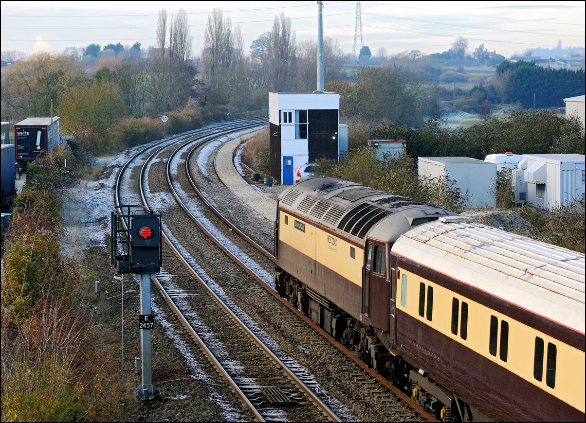 It used up a lot of recovery time, having left Oxford for the run north some 26 minutes late, passing Hatton only 2 minutes down. 47355 is just about visible on the rear of the train.