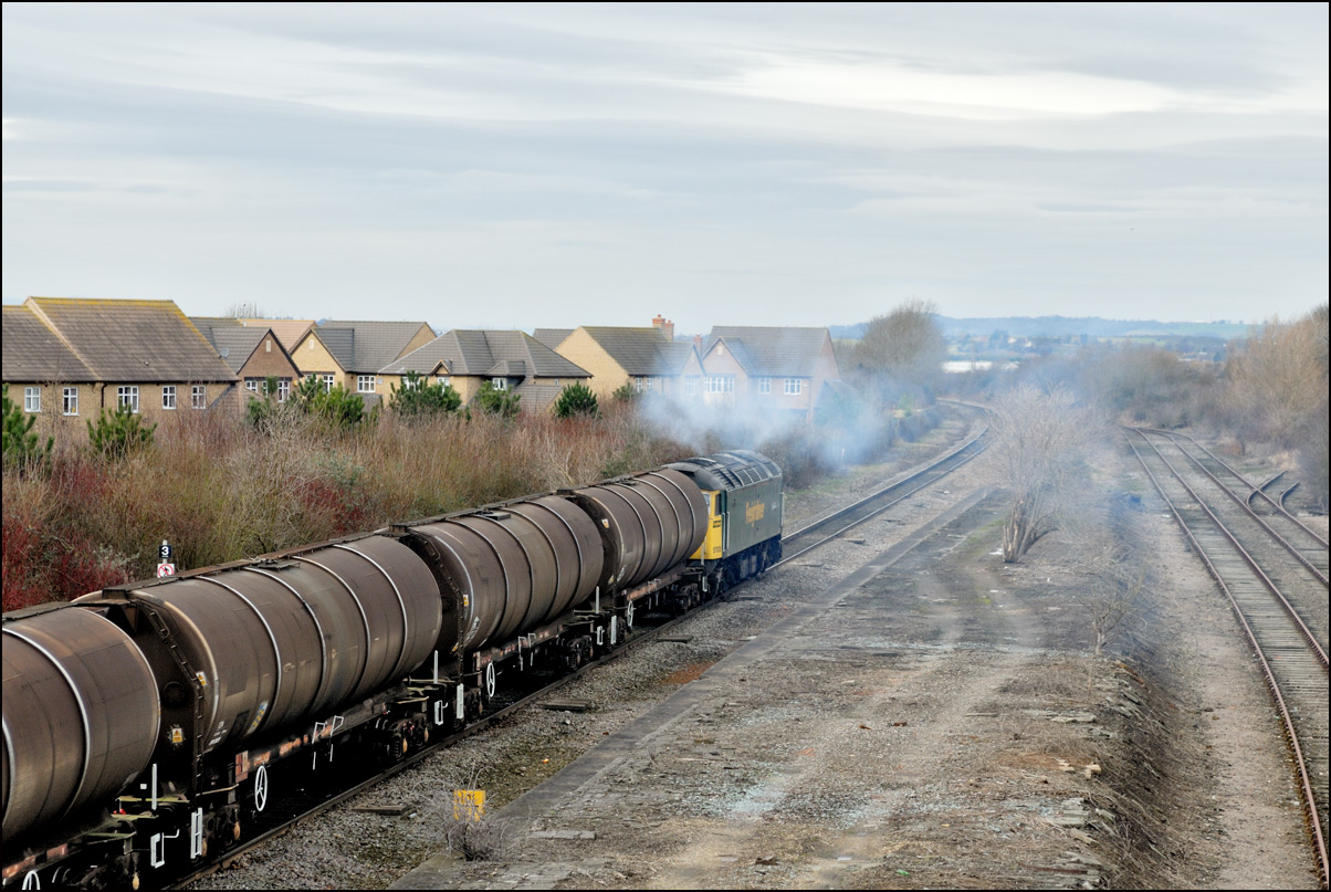 exit from the siding so that the sun could illuminate the bodyside and front. I like the long lens shot here as the compressed perspective shows well the hills surrounding Long Marston - the primary reason for an airfield and associated MOD facility being constructed