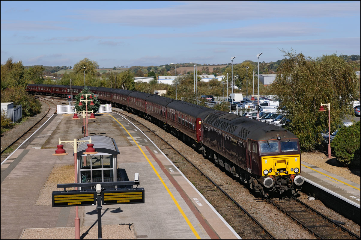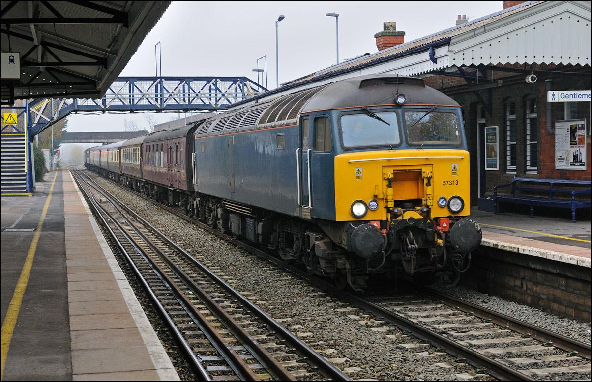 As one who doesn't keep up-to-date with who is operating which locomotives, I was surprised to see WCRC's 57313 in a blue colour scheme and assume that this is a recent acquisition and that there hasn't been time for it to be defaced with their dreary corporate maroon.