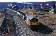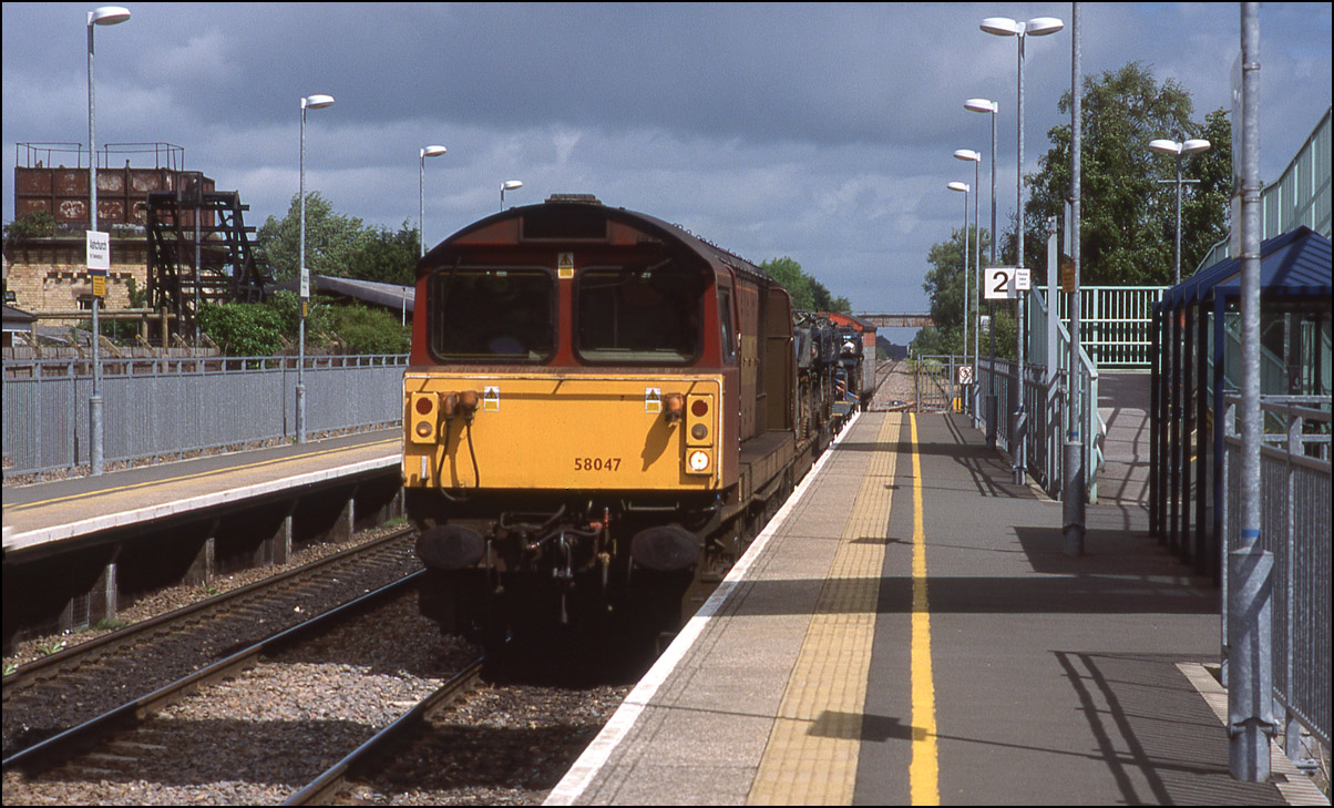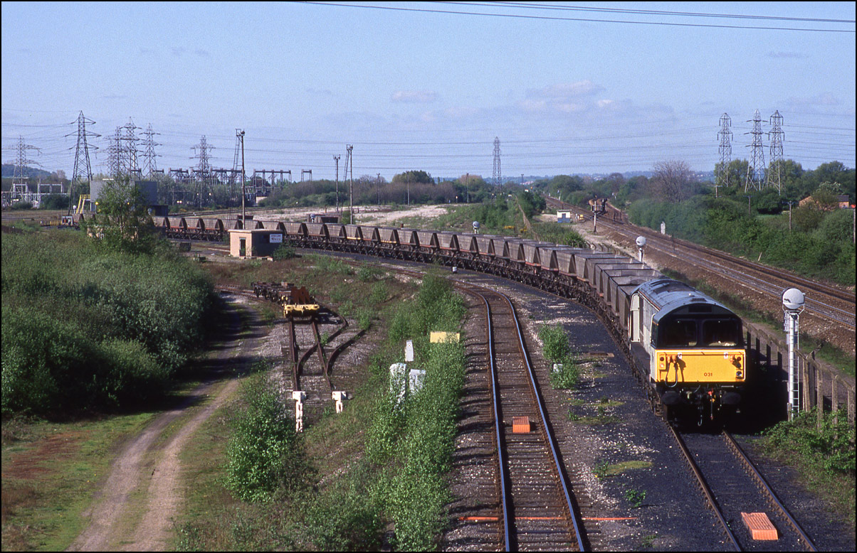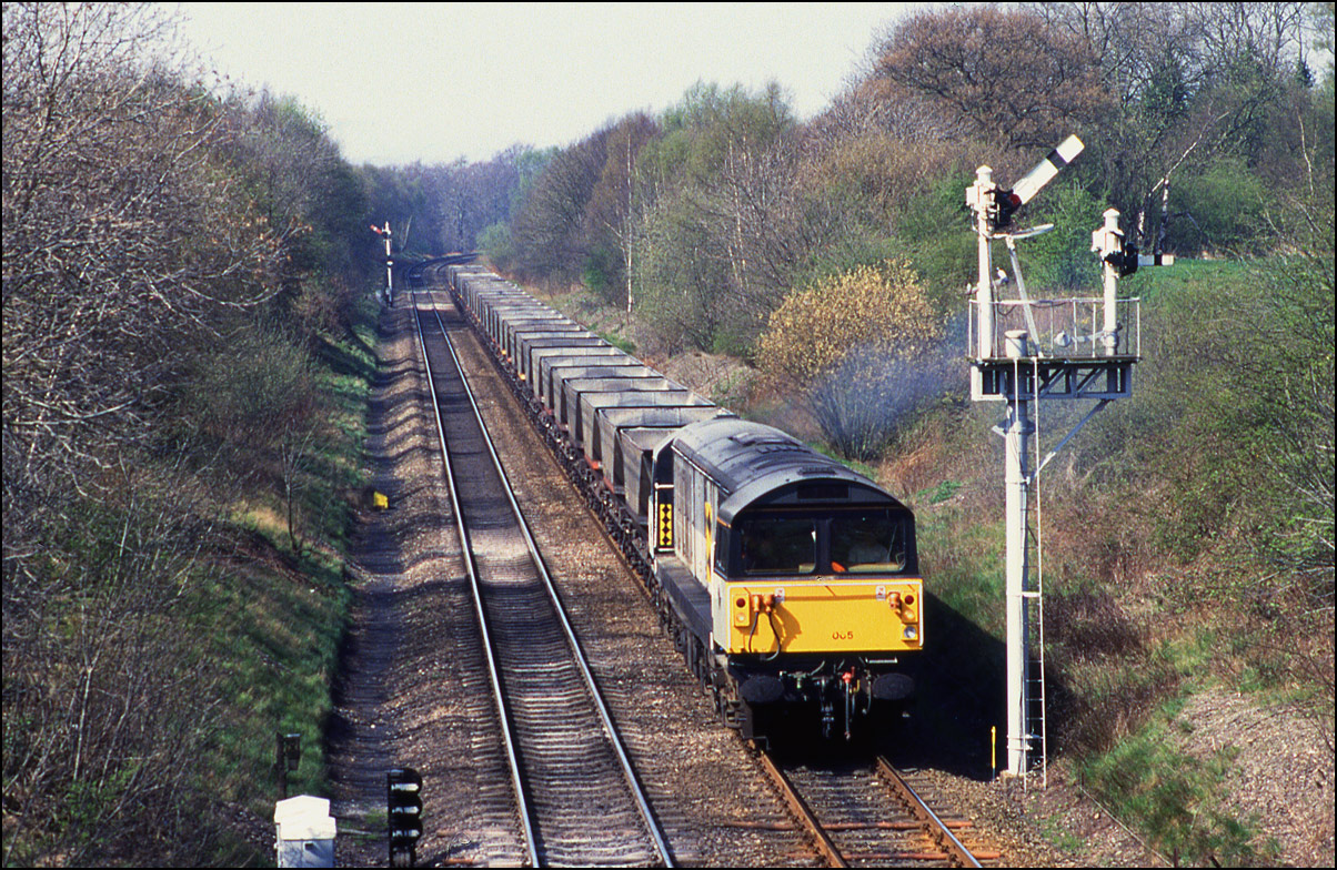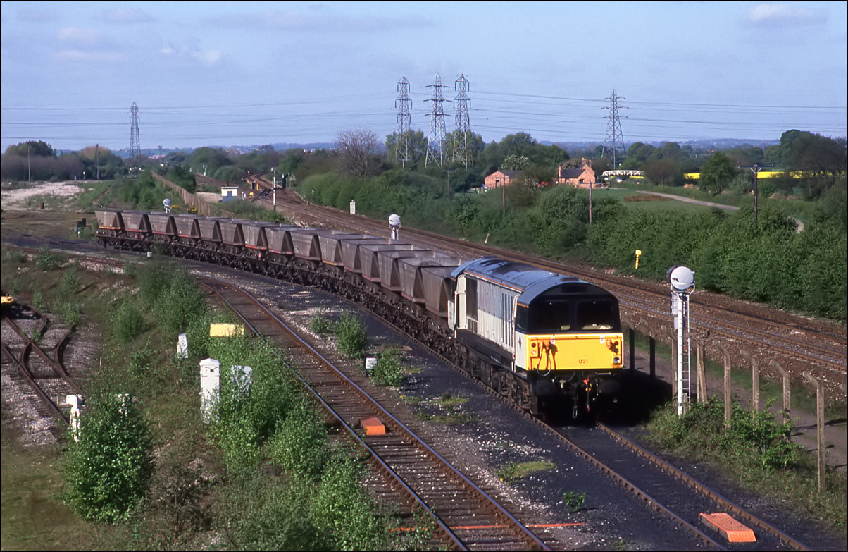 On 19 January 1991 I was there in the late morning when 58005 was working an empty MGR from the power station to either Silverdale or Littleton colliery. A few years later the same locomotive broke new ground for the class when it visited Stratford-upon-Avon