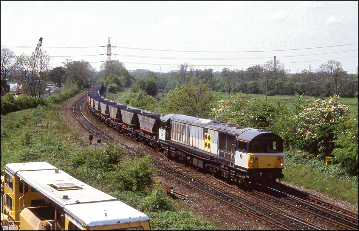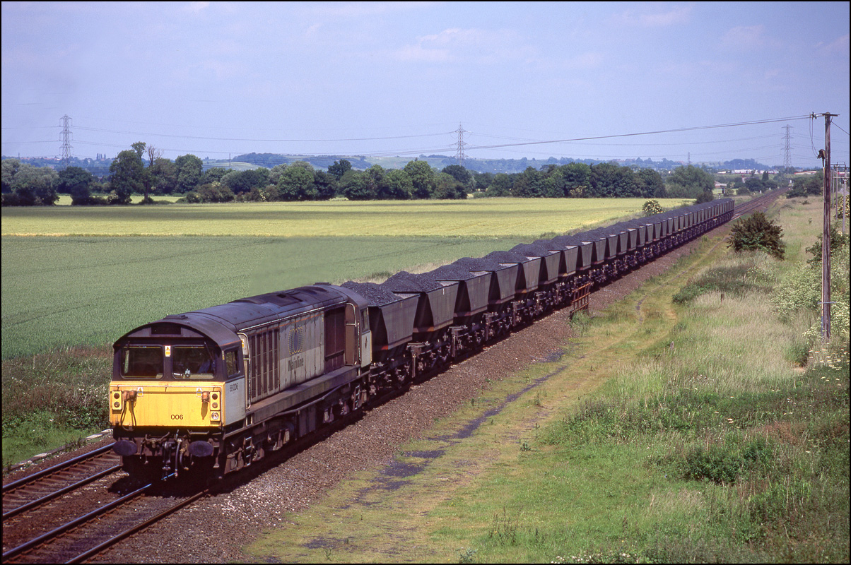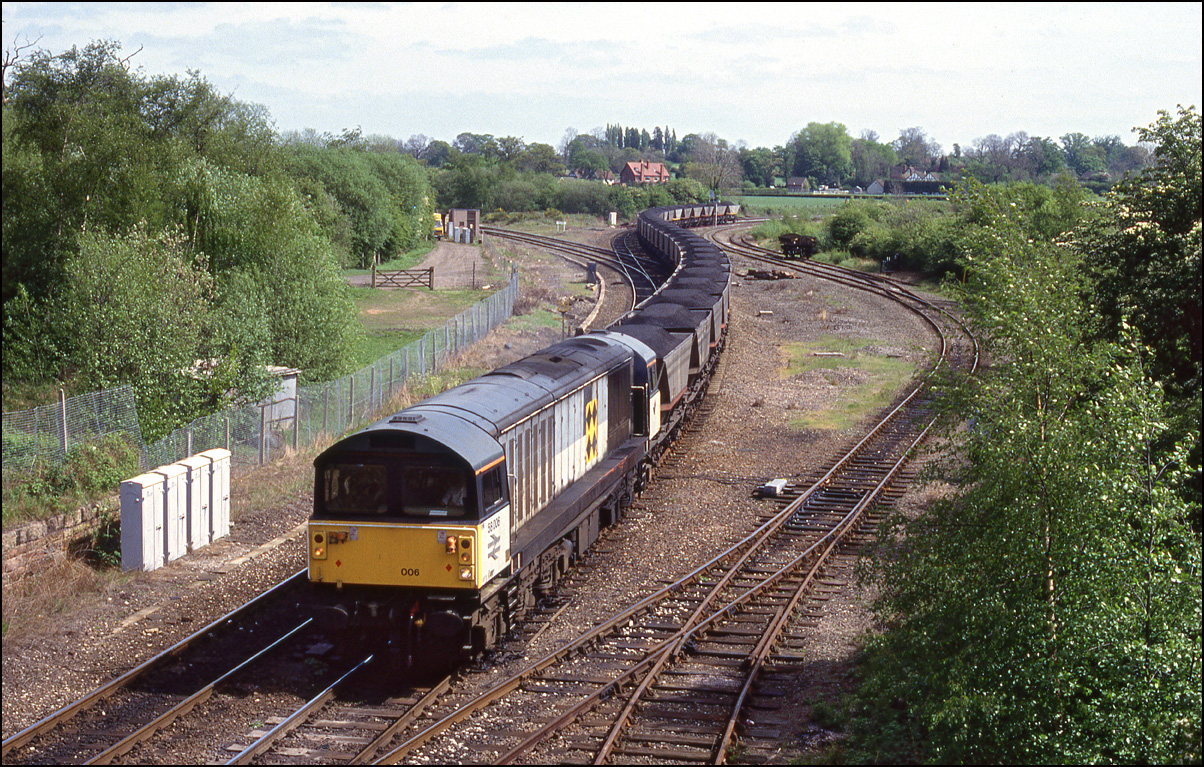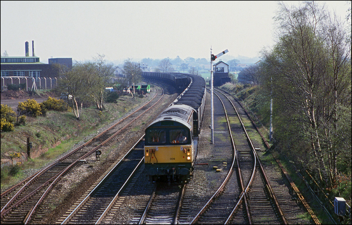 In 1994 it was rare to see anything other than a 58 on MGR traffic to Rugeley Power Station. 58009 is the subject of this study at Catholme as it awaits the right of way to turn right at Wichnor junction and head along the freight-only line to Lichfield Trent