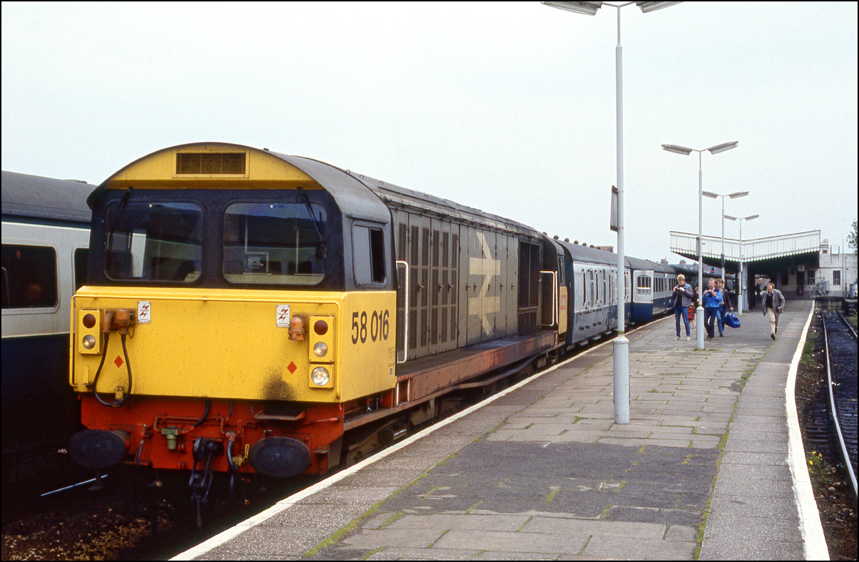 The line through Leamington Spa saw many diverted passenger trains on Saturday 11 May 1985. One of the most notable was the use of 58016 on a down express pictured