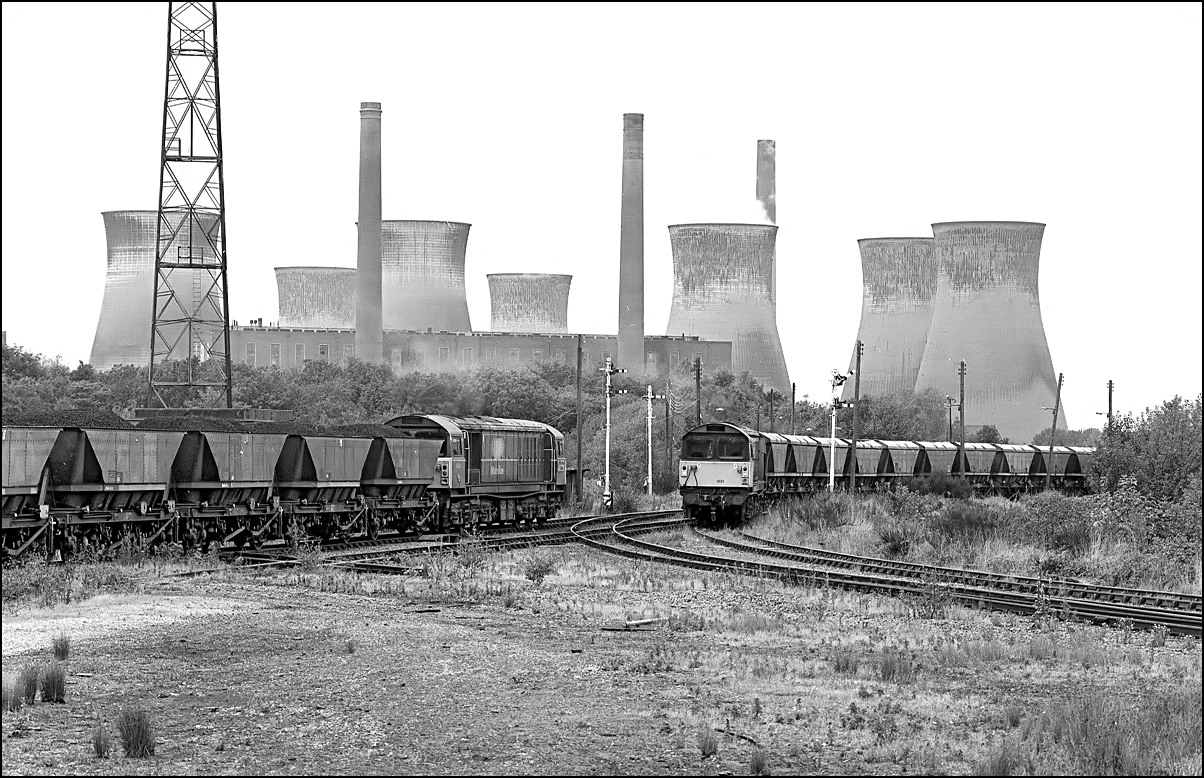 Rugeley Power Station consumed enormous tonnages of coal most of which came from the East Midlands collieries and was transported by MGR trains usually hauled