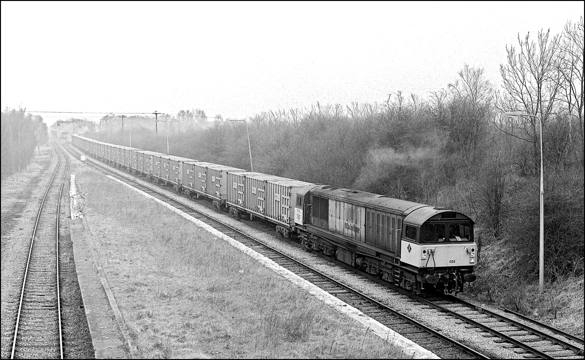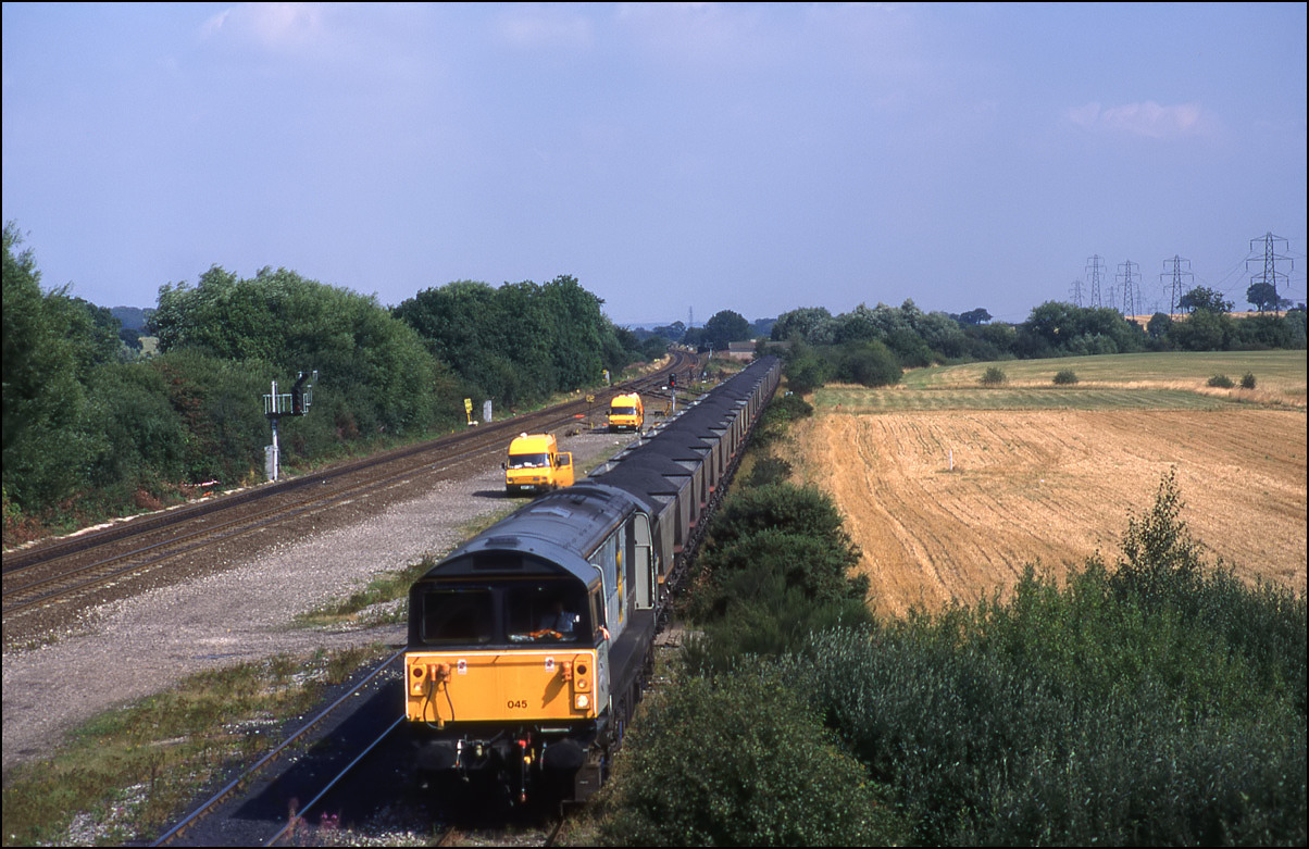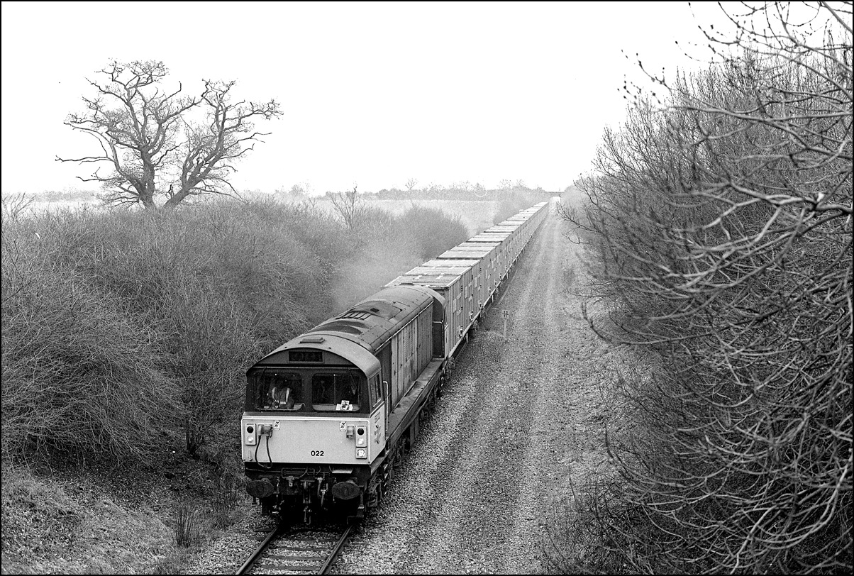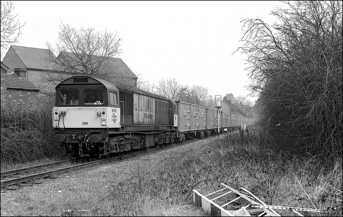Staying with Ironbridge Power Station MGRs here is 58004 passing Beamish Farm, near Albrighton on the Wolverhampton to Shrewsbury line. This was a pleasant location which I visited a few times in that era but I expect that it is now completely overgrown