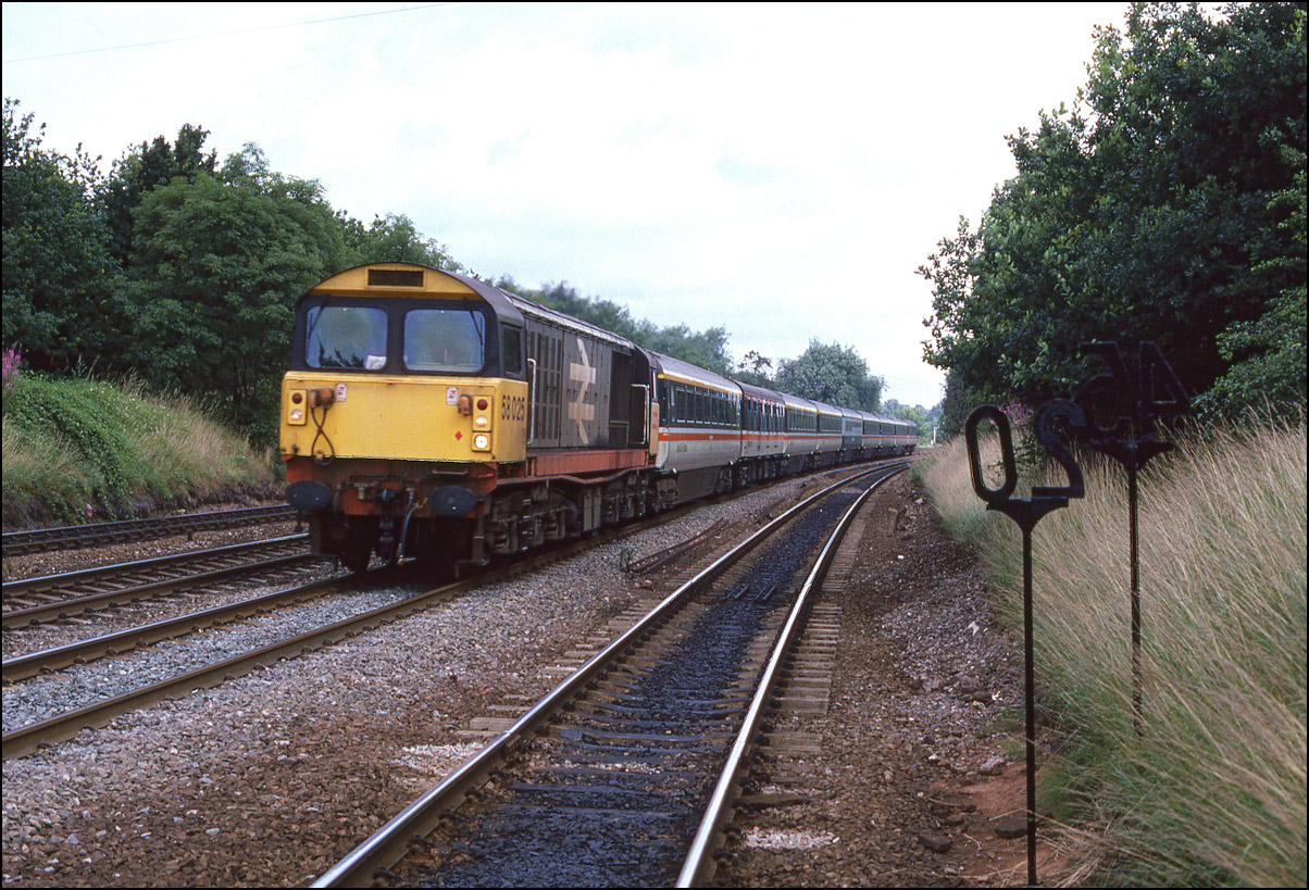It looked as if 58012 had recently visited the paint shop at Toton when I photographed it at Radley, near Oxford, on 4 July 1989. This, formerly the junction for the Abingdon branch, was a great place a few hours at the time, with class 47s and 50s on passenger traffic and almost