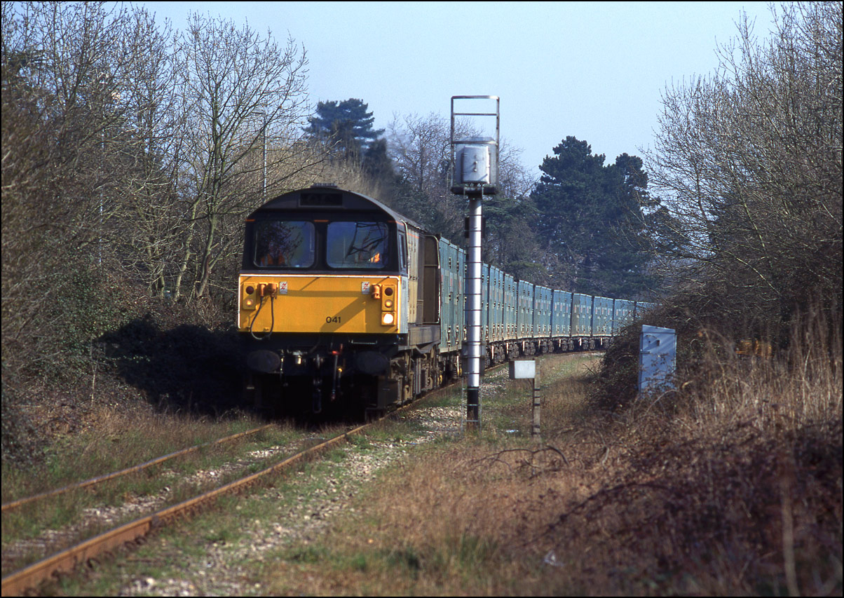 and invariably followed one of the few passenger trains to run over the line. This shot was taken from the level crossing (or nearly from the crossing if the truth be told as a tree was growing in just the wrong place) as 58041 waited for permission