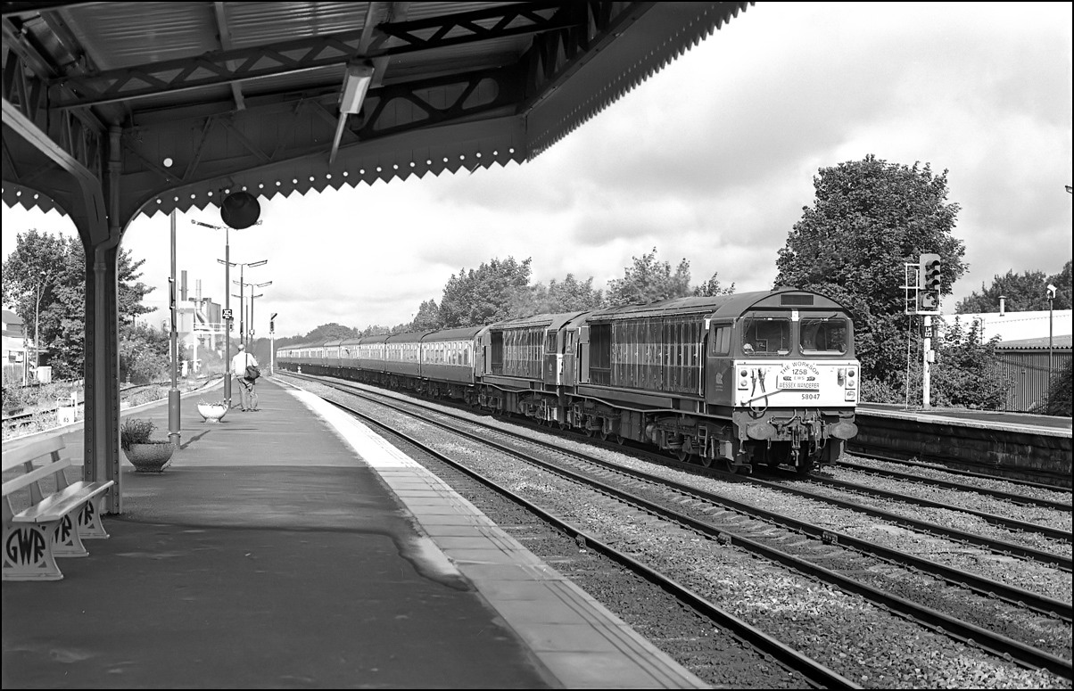 and I was fortunate enough to be at Reading about to catch a local train to Basingtstoke when the class 58 and its train rolled into platform 5. This shot, one of several I reeled off, was taken