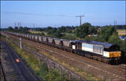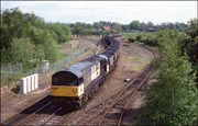 run-round the train before going to Drakelow - surely one of the shortest MGR runs in the country at the time, 18 July 1996. At one time, the line now simply a headshun, continued under the road bridge upon which I was standing and went to Cadley Colliery.