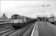 demolished in 1993. This train, hauled by 58004 in as-built condition, was on its way to Didcot PS, one of many such workings to be seen each day at this time. 645