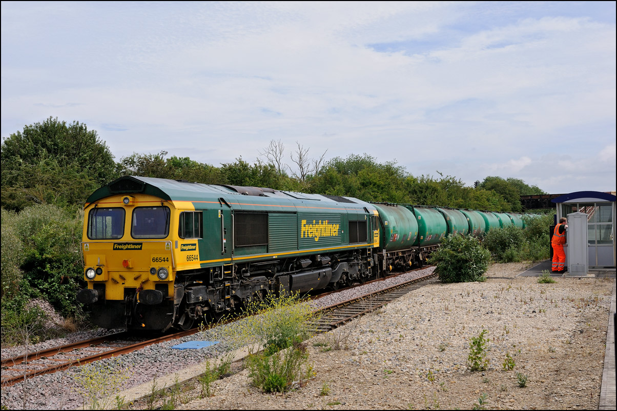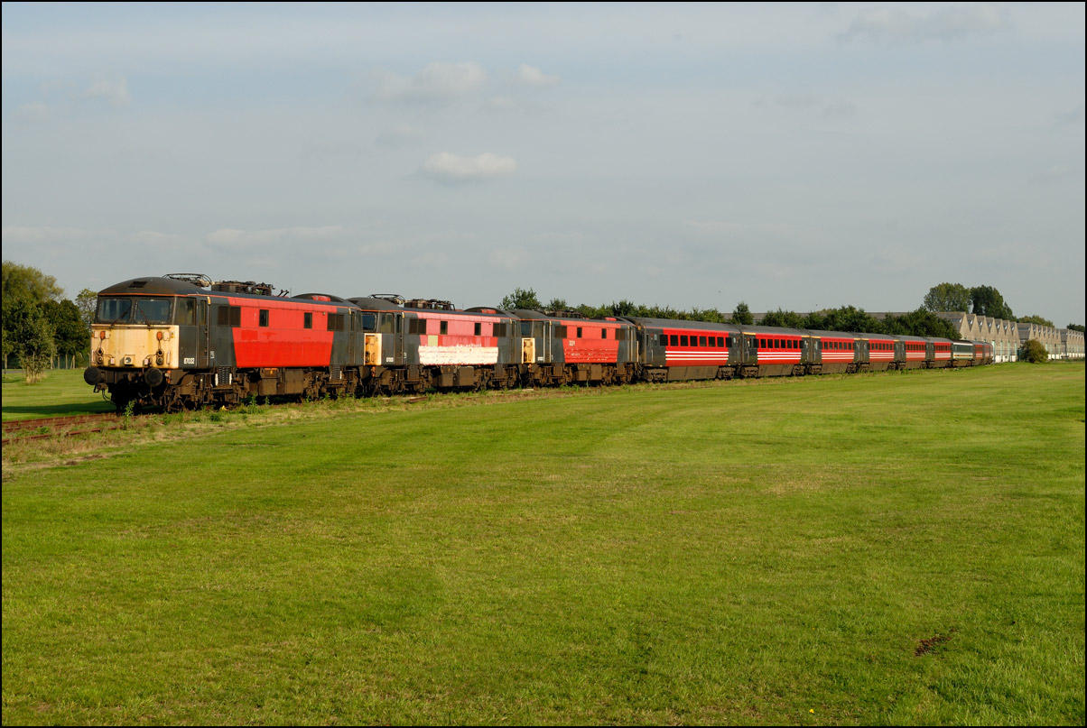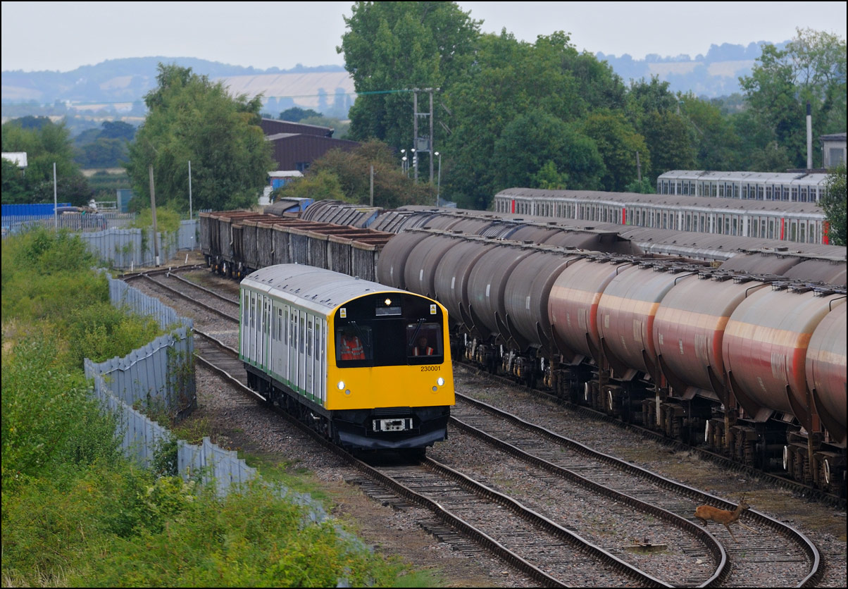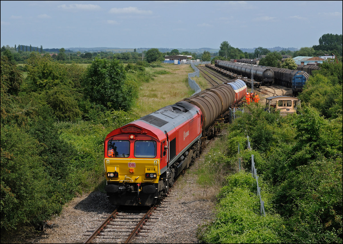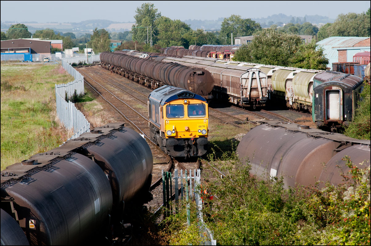 There are now many stored former main line locomotives at Long Marston. Because the Open Day involved the running lines being used by a passenger train, it was, quite understandably, not possible to wander around the site at will to photograph these. However, DRS liveried 20902 was just about in a photographable position between rakes of ICI tankers and cartics and it would have been unreasonable not to have taken a shot given the late summer sun being in a co-operative mood. |