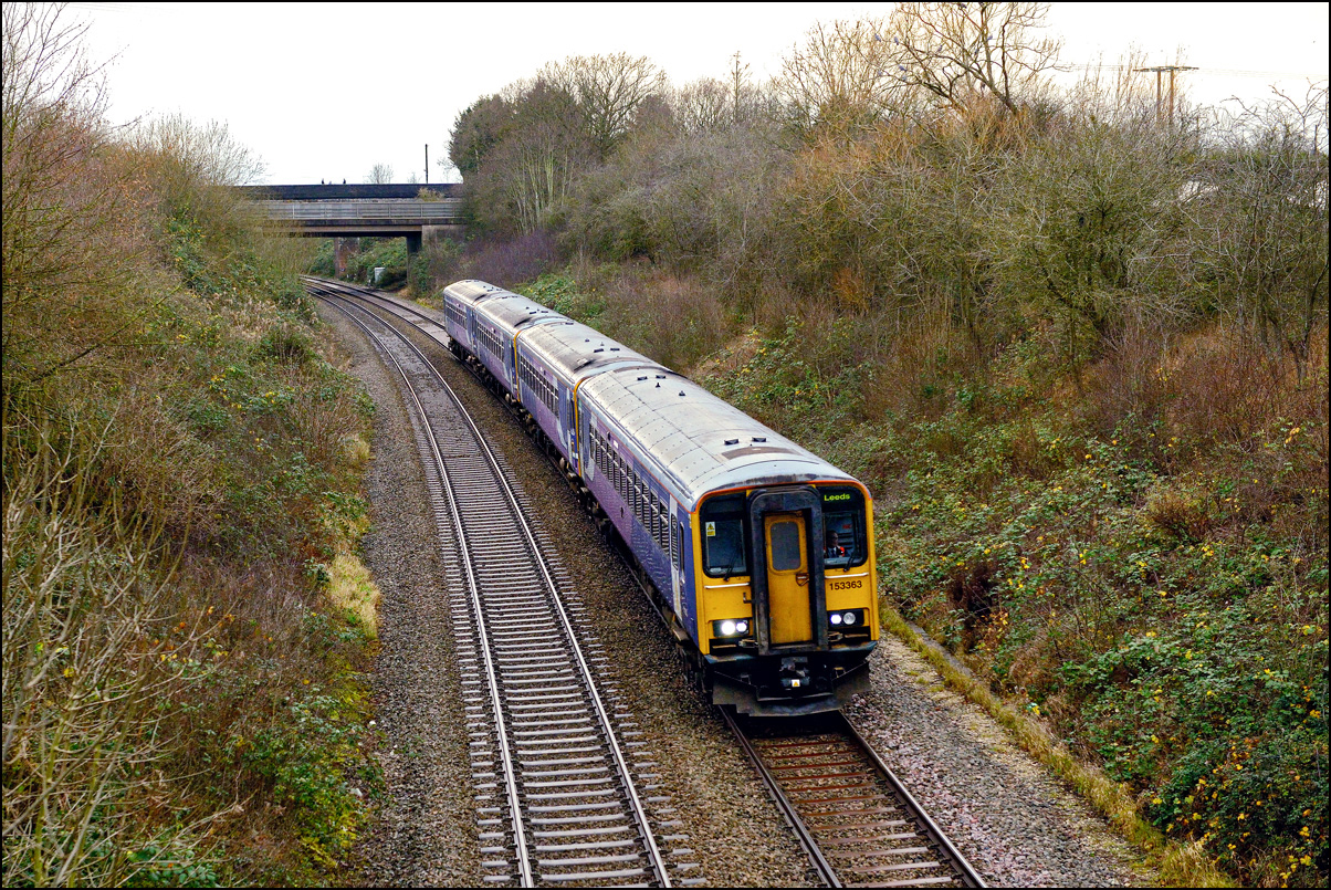 The first class 150 other than the test unit 950001, as far as I know, to run over the Long Marston branch was 150275 which ran from Neville Hill depot as 5Q94 on Monday 6 January 2025. The train was scheduled to arrive for corrosion repairs and a C6 Heavy Maintenance Exam at about 15.20 which on a sunny afternoon is a bit tricky from a photographic point of view with the sun being only just of frame to the right of the line. It's lucky that some hedge trimming has been done on the lineside so there weren't many intrusive shadows. |