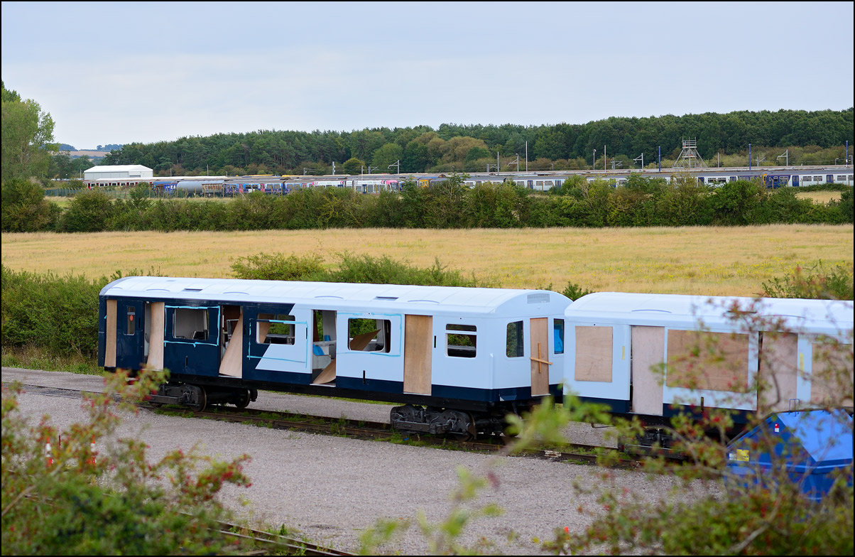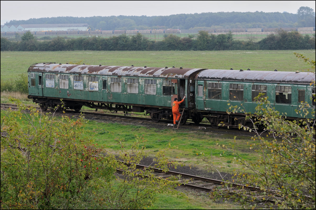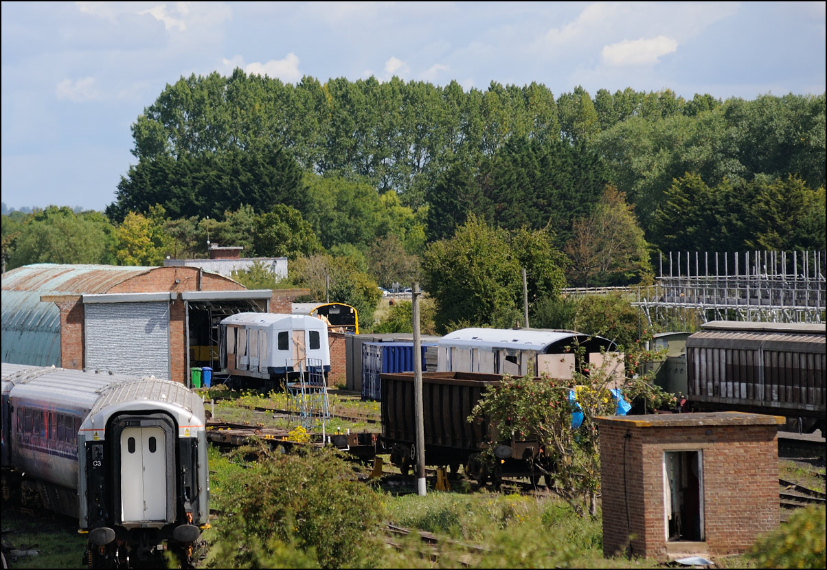 This MkI SK really stood out in the September sunshine. It is a Metro Cammell Second Corridor of 1957 vintage, numbered 25231. It was acquired for spares, but following the plating over of its windows has been used as a stores vehicle. |