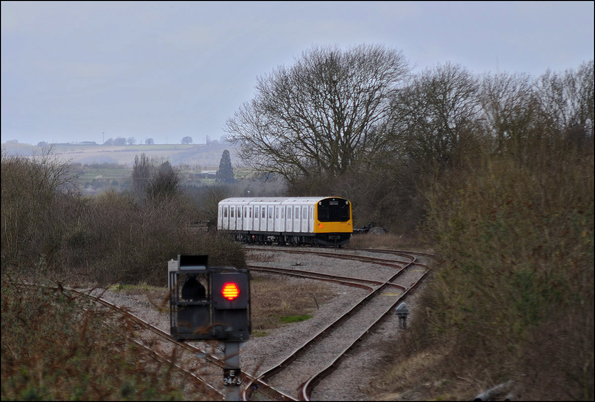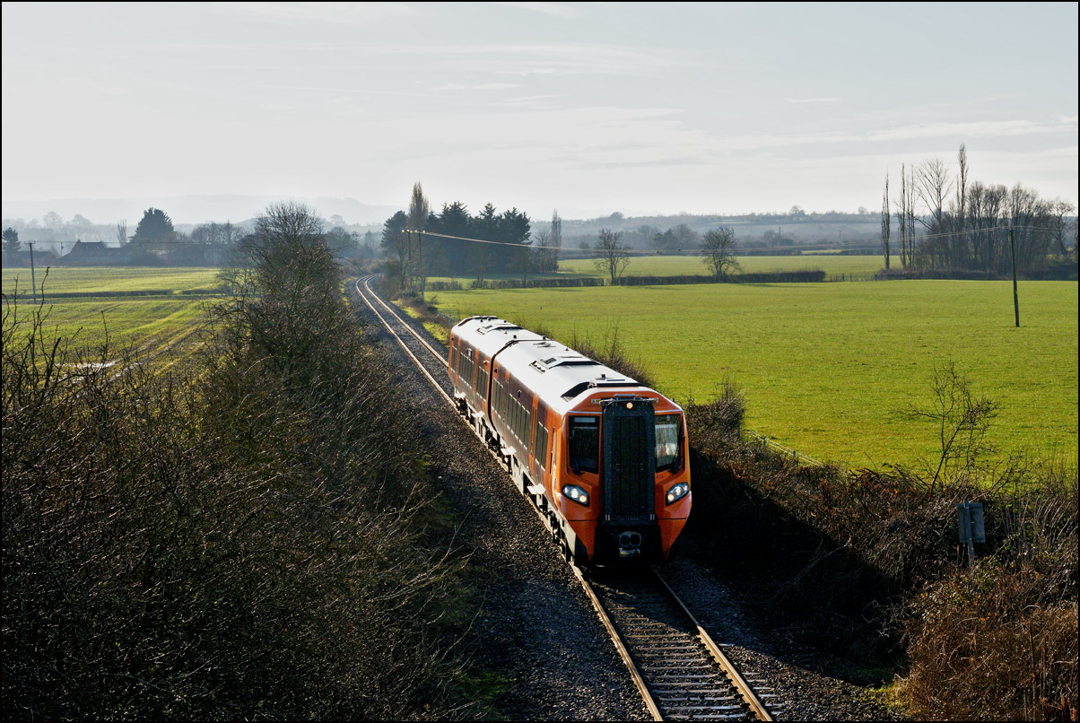 Another class 196 DMU went from Tyseley to Long Marston for modifications on Tuesday 14 January 2025. I had still to take a shot of a set working solo on the branch so as it was cloudy but brightish when it left Norton Junction went to the roadbridge at Long Marston for a picture of 196012 arriving. As I drove through the village the cloud cleared leaving a low sun to shine almost straight along the line. Not ideal conditions but I'm usually up for a challenge so... |