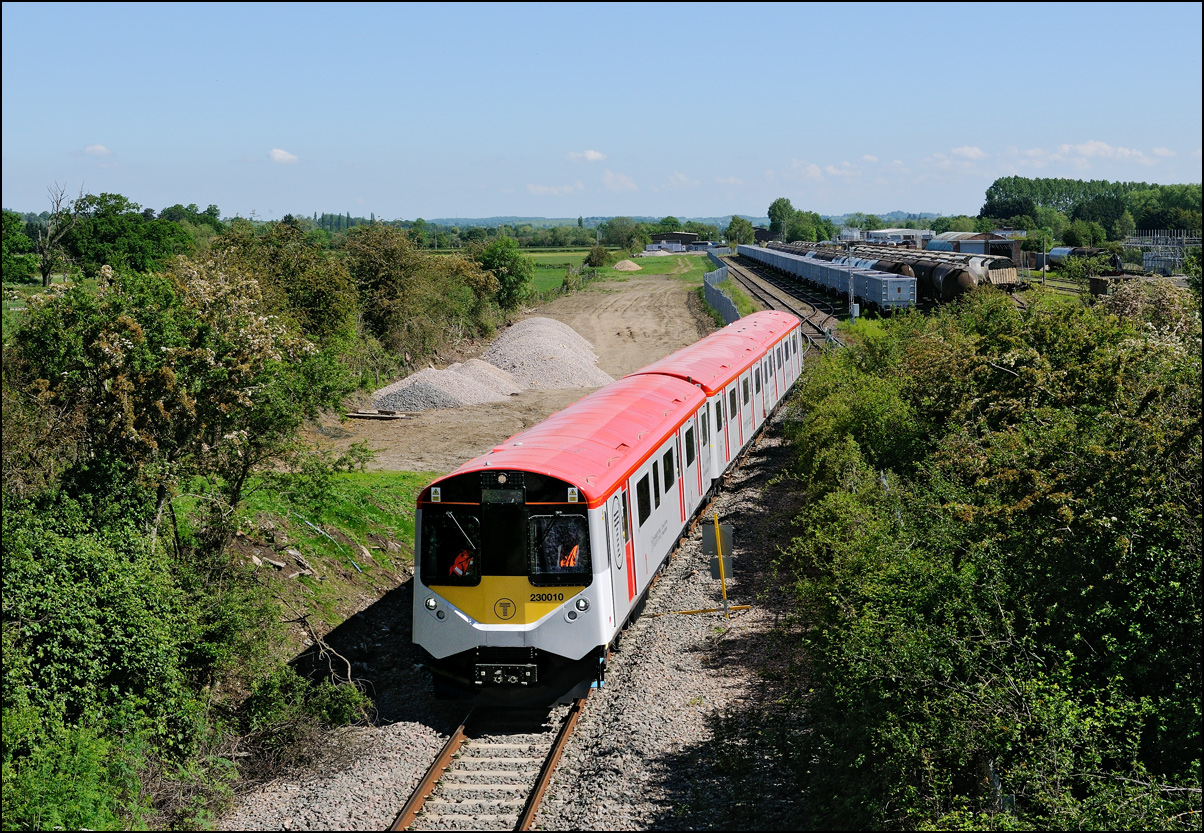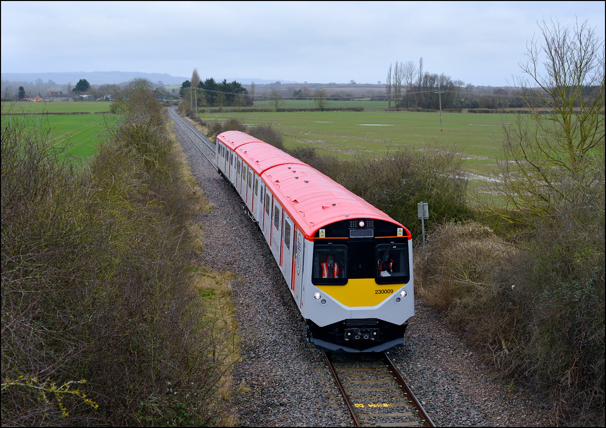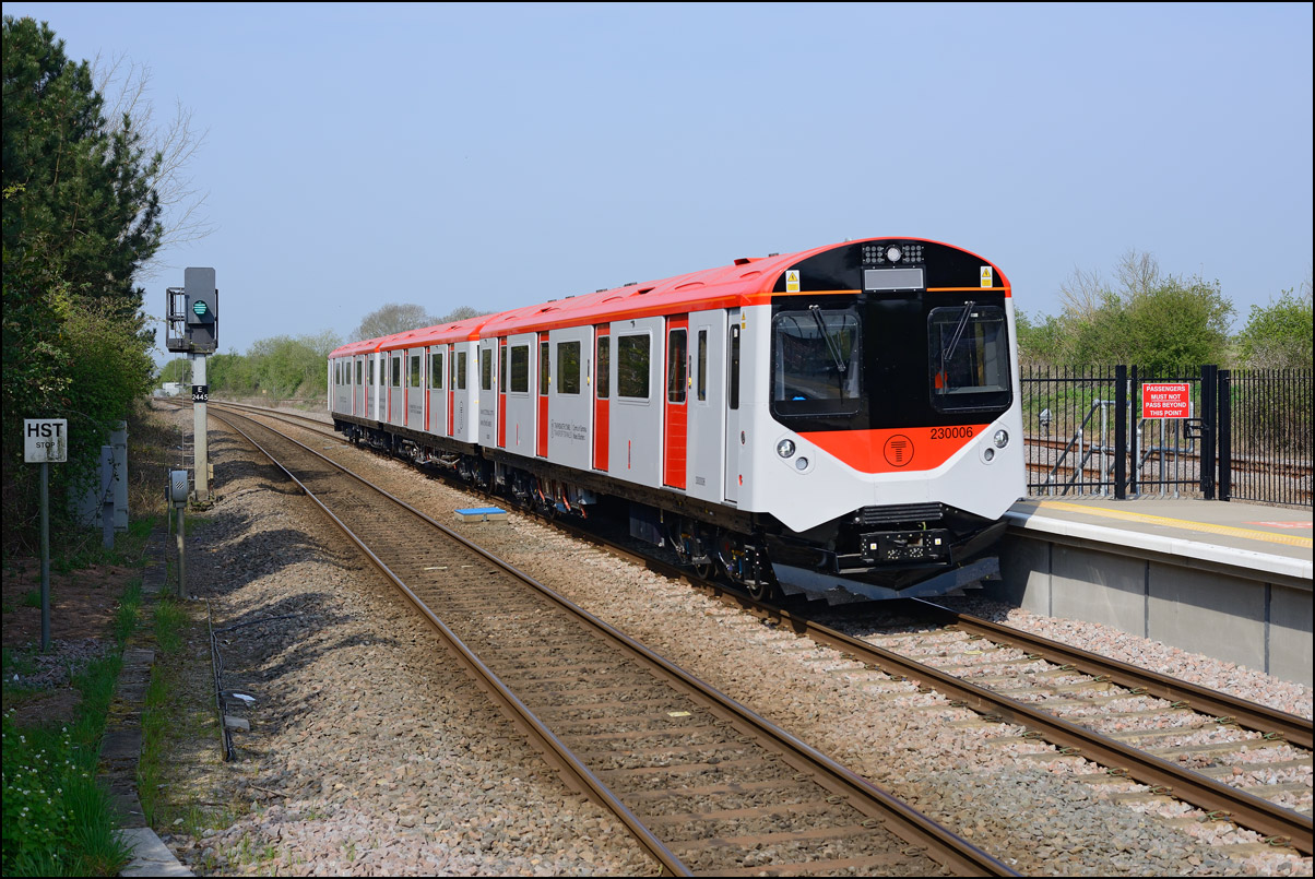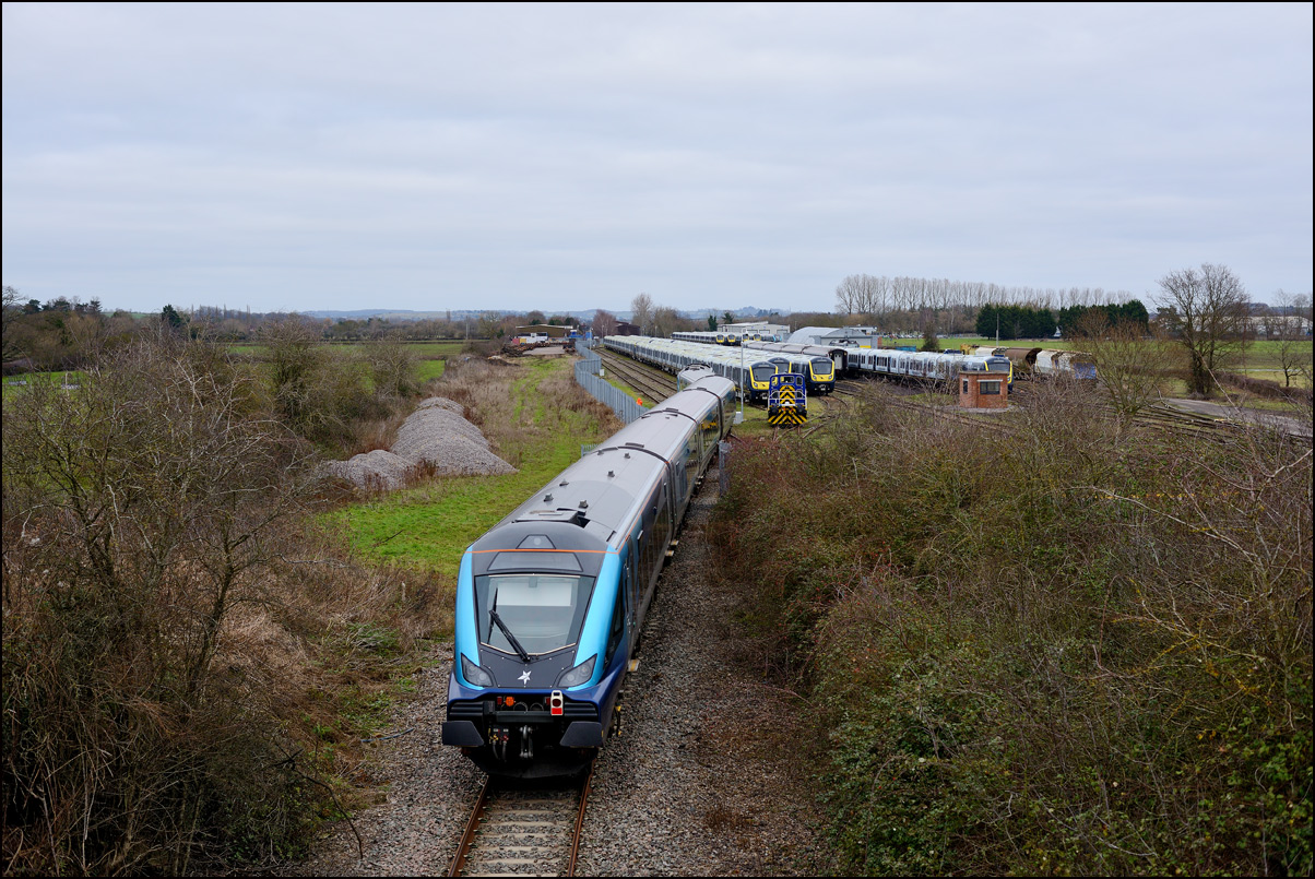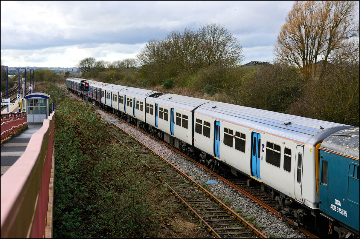 Yet another class of brand-new rolling stock is ending up in Long Marston. This time it is LNWR class 730 EMUs, the first of which ran on Friday 24 March 2024 and arrived with ROG 37884 topping up its Long Matston loyalty card once again. The weather was dull but a first is a first and all that so I made the journey across to take a few shots, the first being this as 5Q94 from Oxley CS approached the site. It was running 64 minutes late after being diverted from the Stour Valley from Wolverhampton to go via Pleck Junction and Sutton Park reportedly due to a cable theft somewhere between Birmingham and Wolverhampton. |