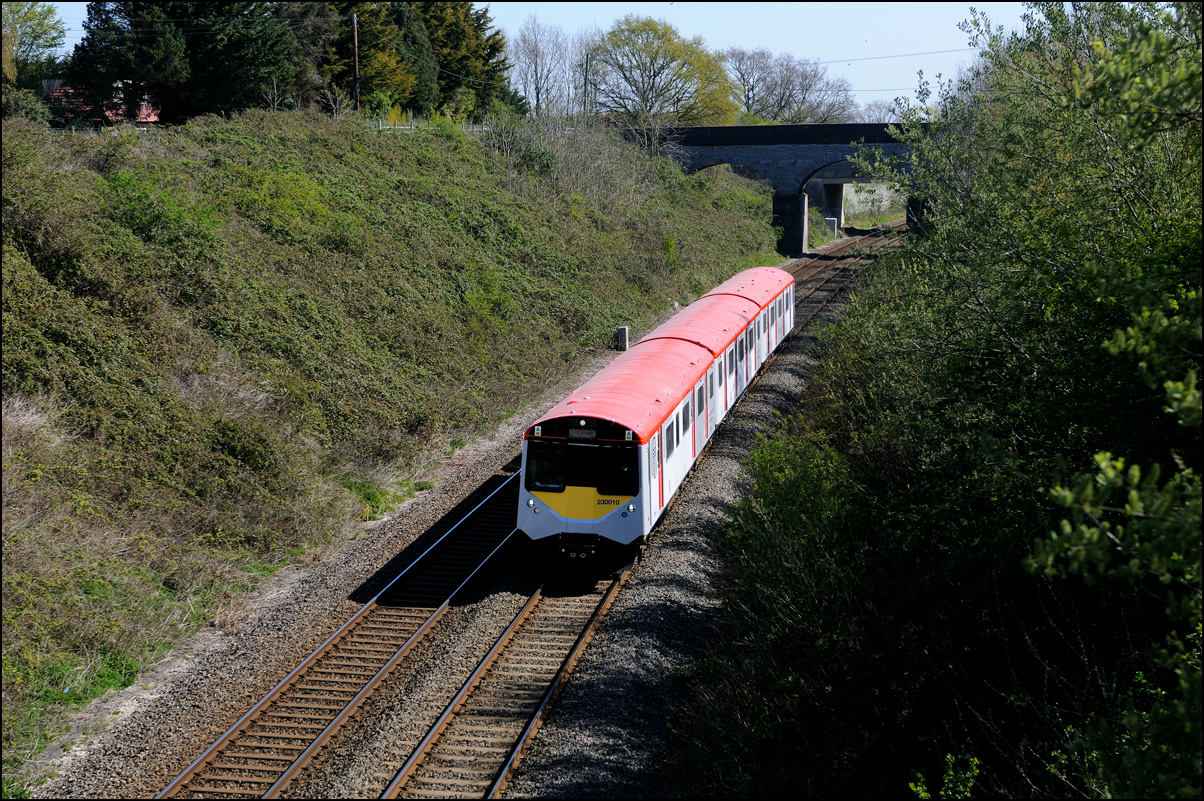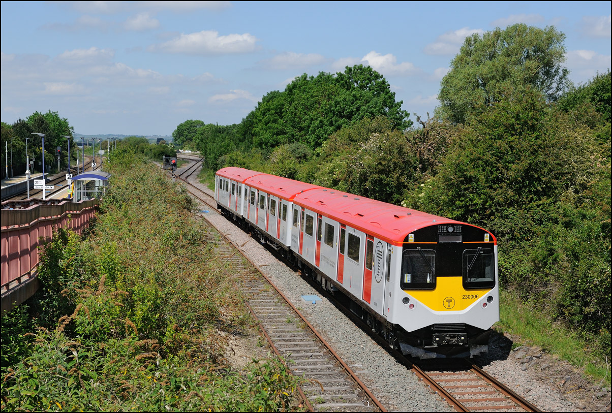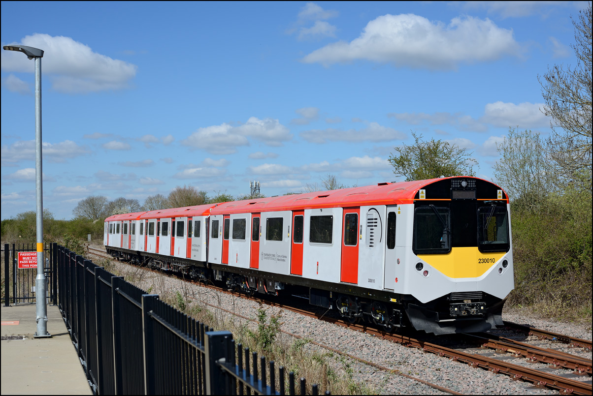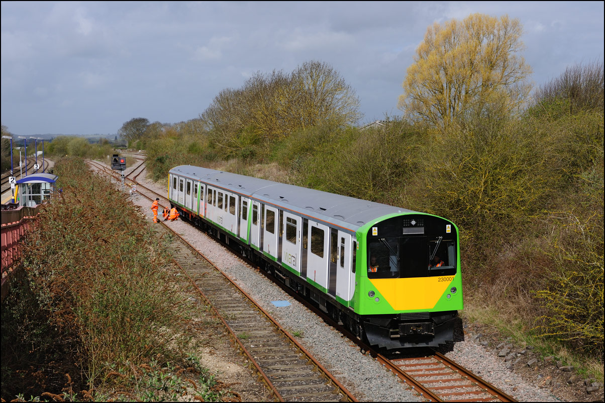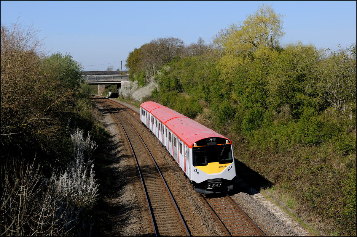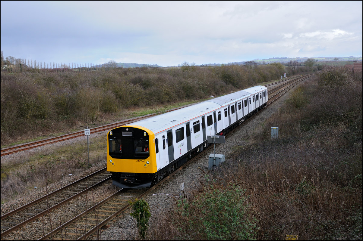 Yet another class of brand-new rolling stock is ending up in Long Marston. This time it is LNWR class 730 EMUs, the first of which ran on Friday 24 March 2024 and arrived with ROG 37884 topping up its Long Matston loyalty card once again. The weather was dull but a first is a first and all that so I made the journey across to take a few shots, the first being this as 5Q94 from Oxley CS approached the site. It was running 64 minutes late after being diverted from the Stour Valley from Wolverhampton to go via Pleck Junction and Sutton Park reportedly due to a cable theft somewhere between Birmingham and Wolverhampton. |