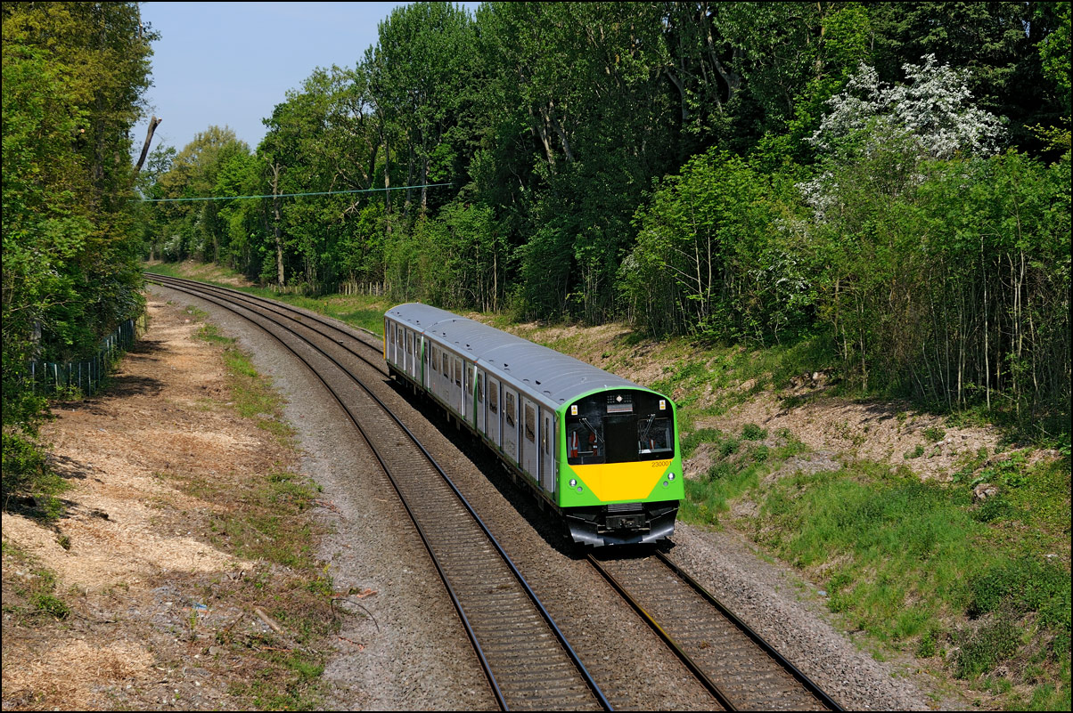 Another 5 car class 730 EMU went to Long Marston on Saturday 25 May 2024. This time it came from Derby Litchurch Lane although still running as 5Q94 and with 37884 collecting its final loyalty card stamp for a free flat white. My wife and I had been for a late breakfast at a café a few miles away and left it a bit late but luckily the train was equally behind time so there was time to walk from the station car park at Honeybourne to the roadbridge for this image of an increasingly overgrown part of the Long Marston branch. |
