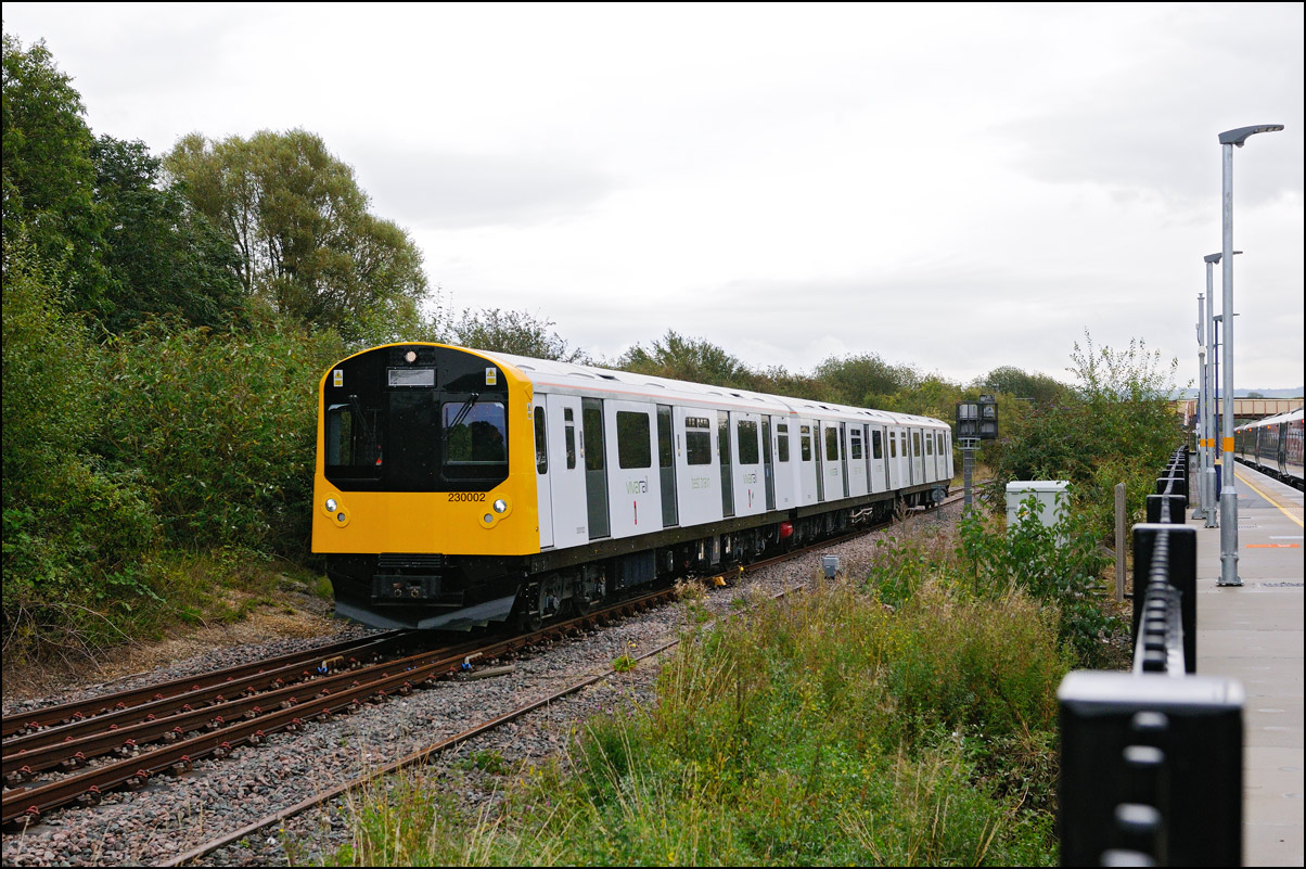 There was yet another transfer of new rolling stock to Long Marston on Friday 4 October when 37510 took 196101 from Tyseley LMD. Running as 7Q94 the train was due to pass Evesham at around 4.15pm and having taken what liked seemed an age after leaving Norton Junction passed the signalbox some 8 or 9 minutes late running at what looked to be well below the 45mph set out in the schedule. I have no idea why 196101 was going to Long Marston as it has been in service as seen here at Stoke Prior on 9 May 2024 working a Hereford to Birmingham New Street service. |
