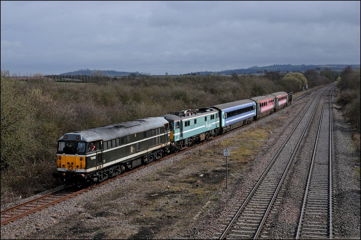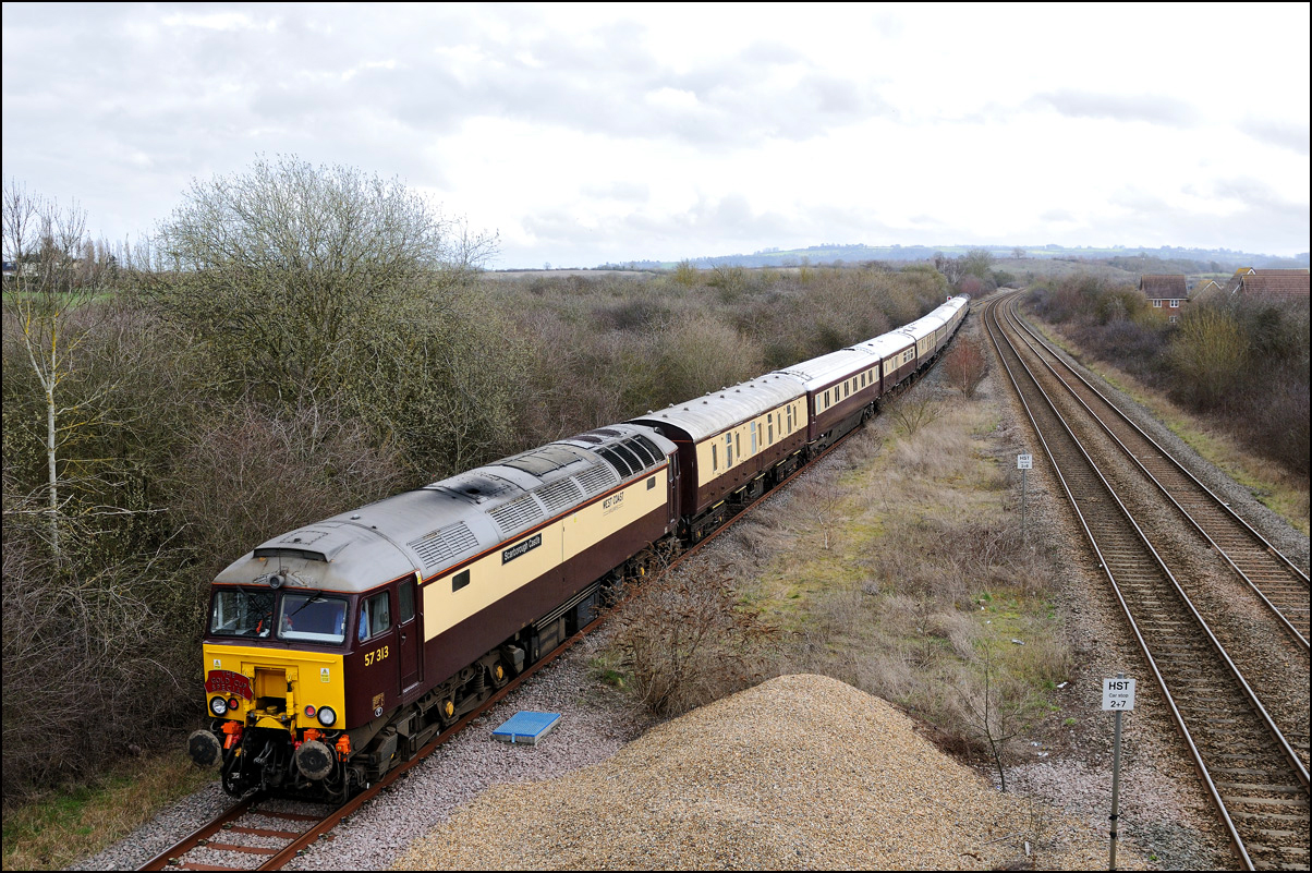 As I mentioned above, there are limited photographic opportunities between Honeybourne and Long Marston but at least this one, near the site of the ballast tip, offers a clear view of the train. |