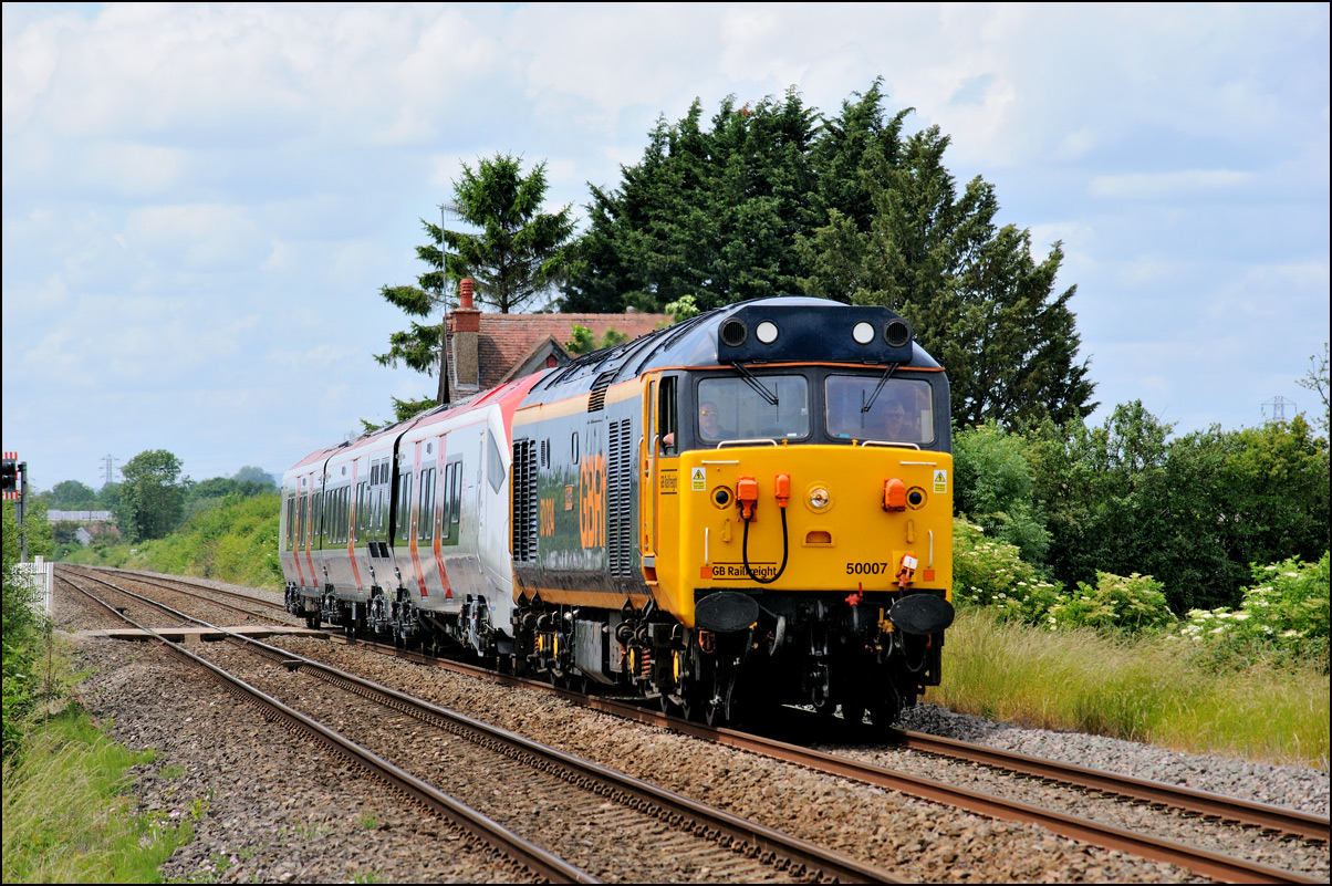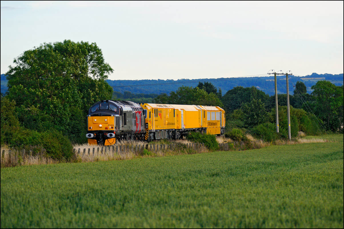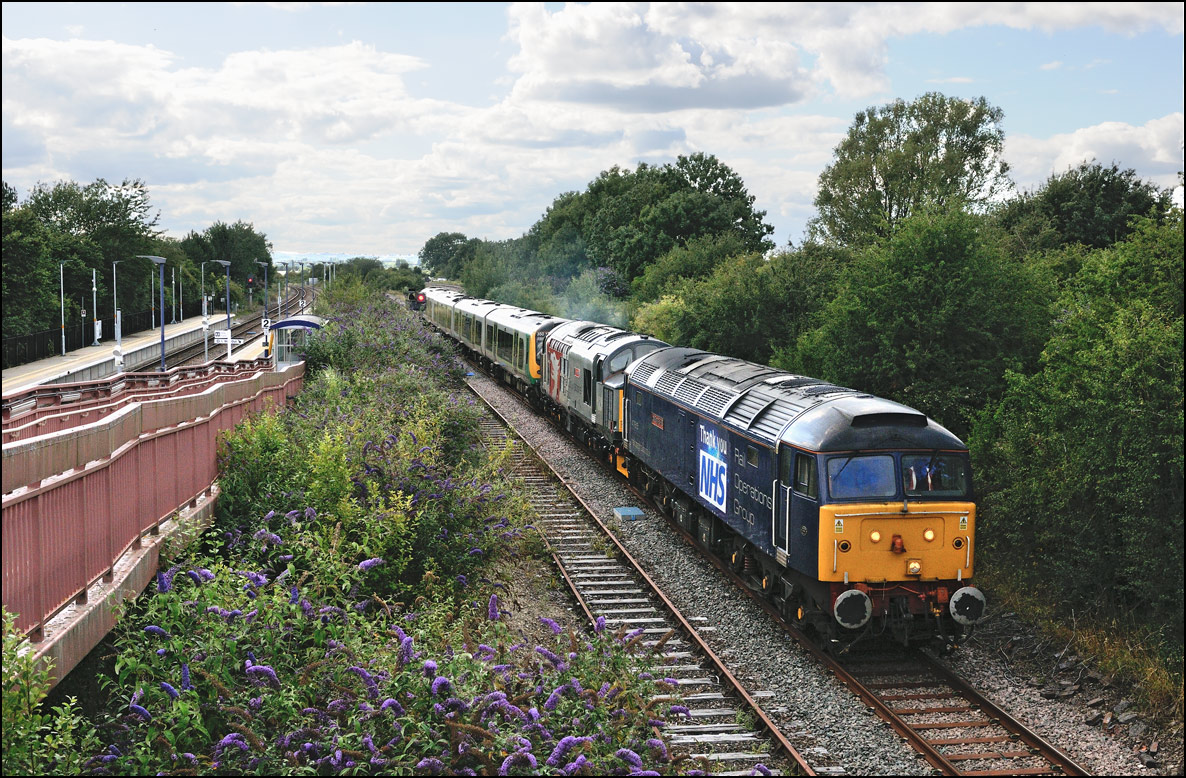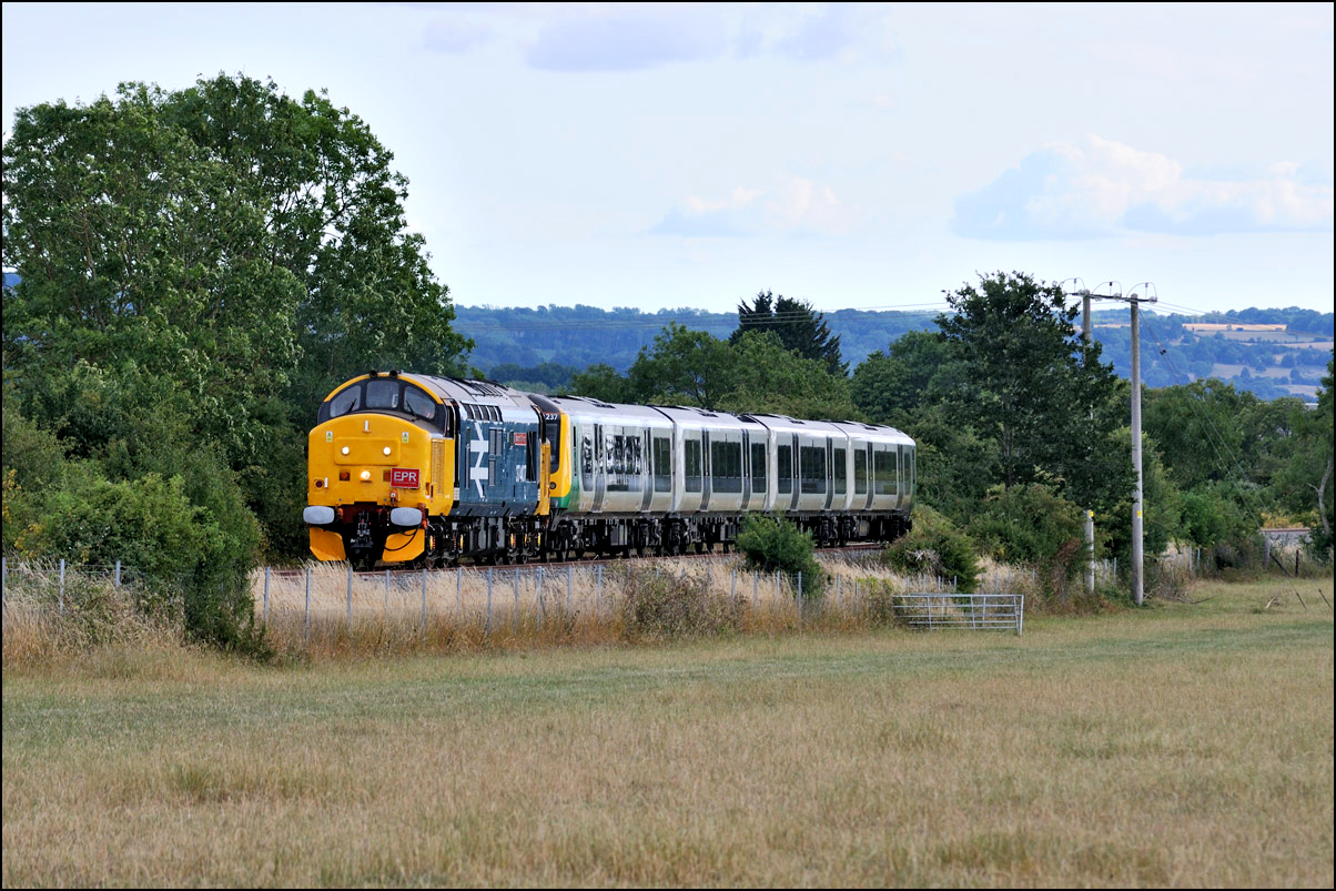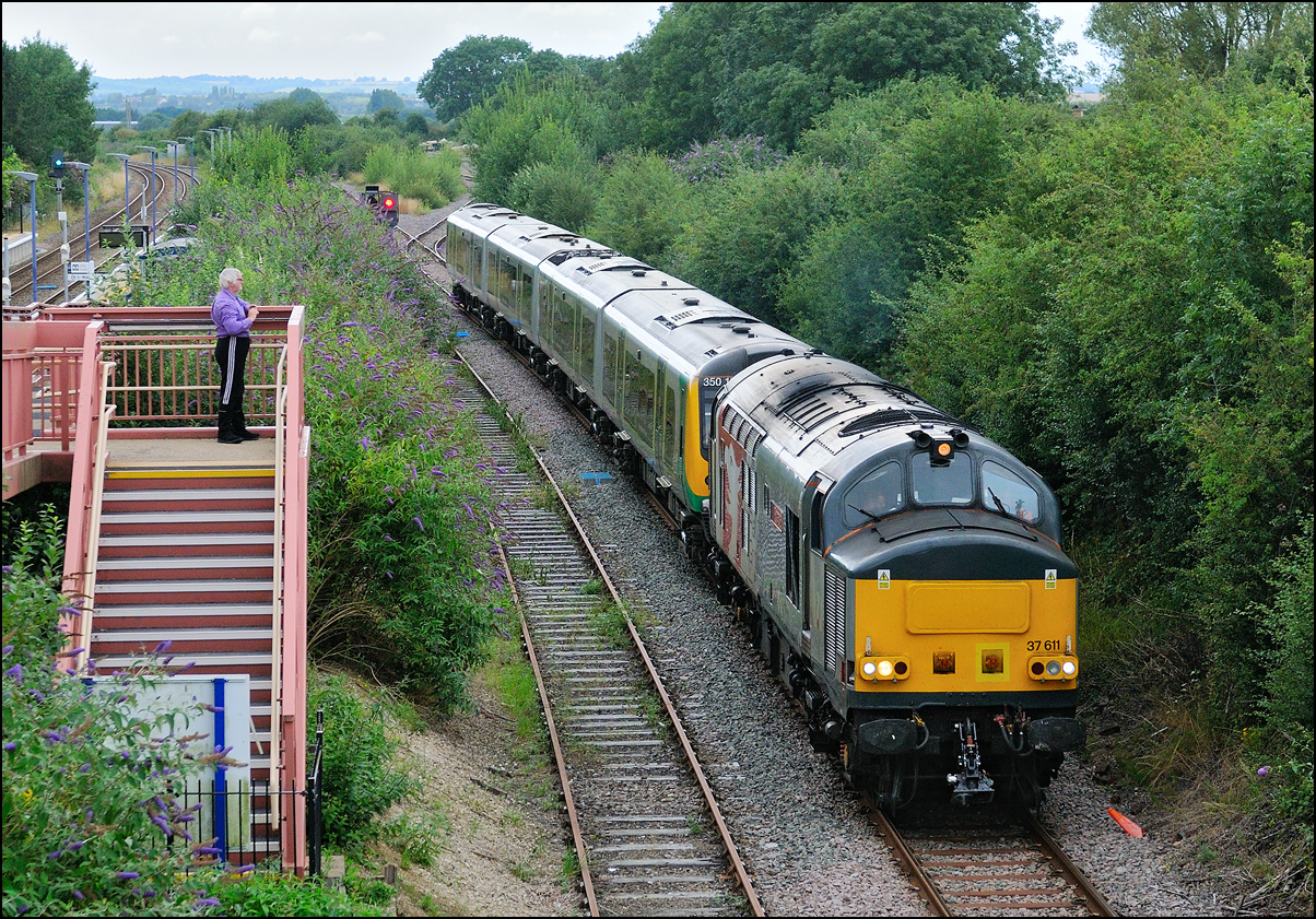 There have been many almost identical stock moves recently that I haven't bothered with most of them but on Thursday 3 July 2025 a 5Q60 from Wembley to Long Marston seemed to be of more interest, It involved a Europhoenix class 37 as a change from an ROG locomotive taking a class 350 for storage in Warwickshire. The train was cancelled but later reinstated but with a departure close to 2 hours late. It picked up a fair amount of time and managed to be let out of Worcester earlier than anticipated but giving me just about enough time to get to Long Marston and walk over a public footpath across the line and into the field, after struggling over a badly vandalised and useless stile, arriving as 37407's driver blew its horn for a farm crossing just around the crossing. It was good to see a smartly turned out locomotive with clean buffers and an EPR headboard hauling 350237 over the final yards of the branch. |