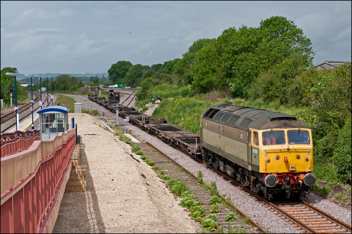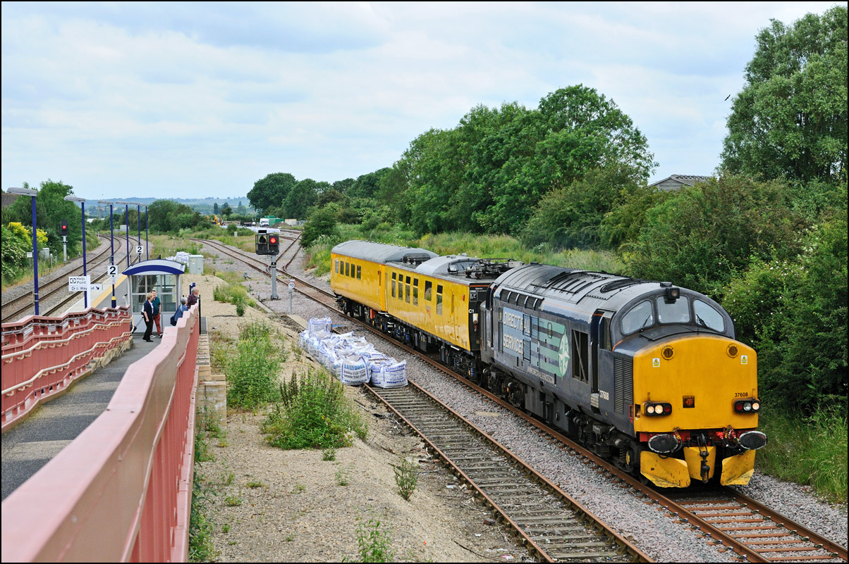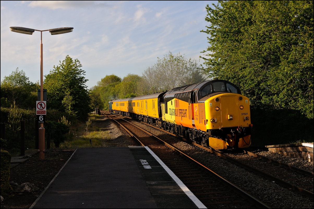 Once permission had been gained for 6Z36 to join the main line towards Worcester, the train set back to the junction and once the road had been set, ran forward into Honeybourne station before heading west to Evesham. For some reason, the crew member who operated the ground frame had climbed back aboard 37245 so had to dismount again once when in the platform and walk back to reset the points behind the train. |