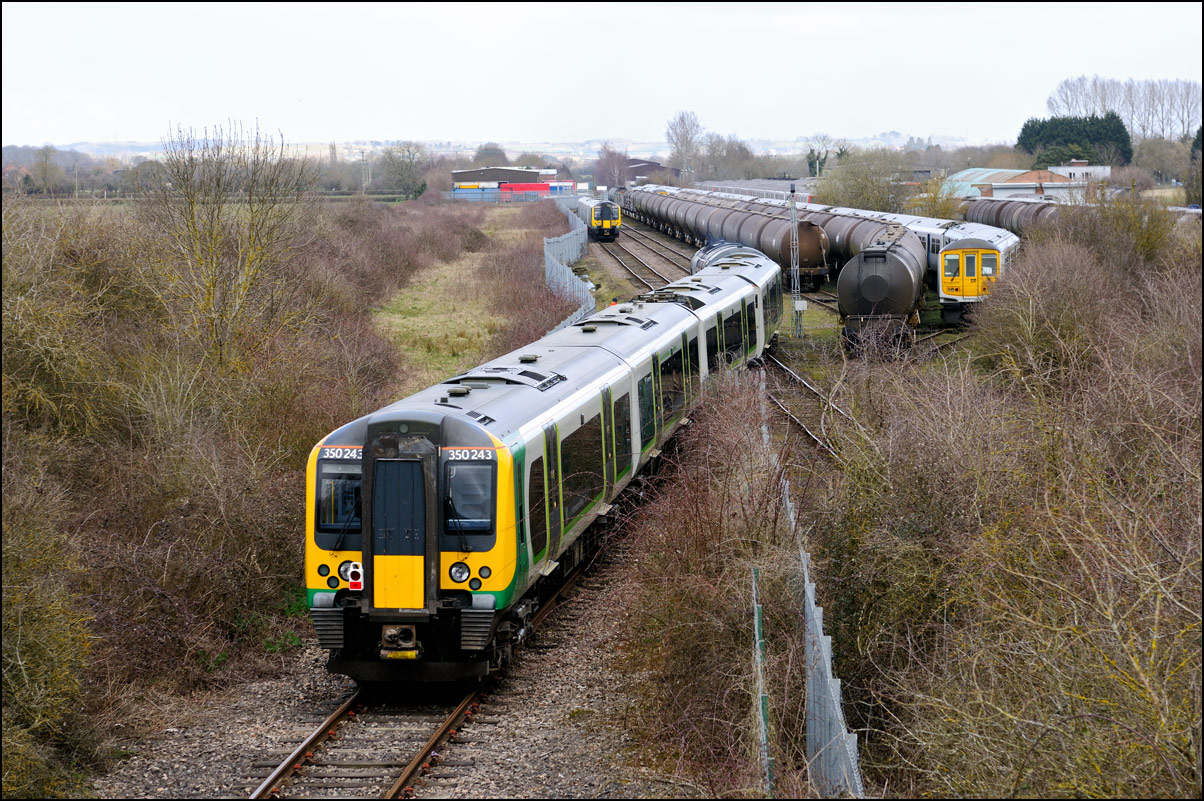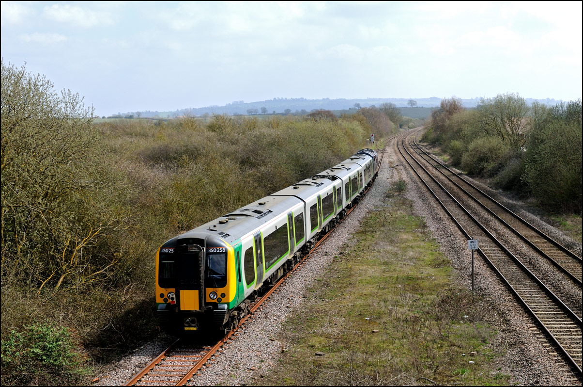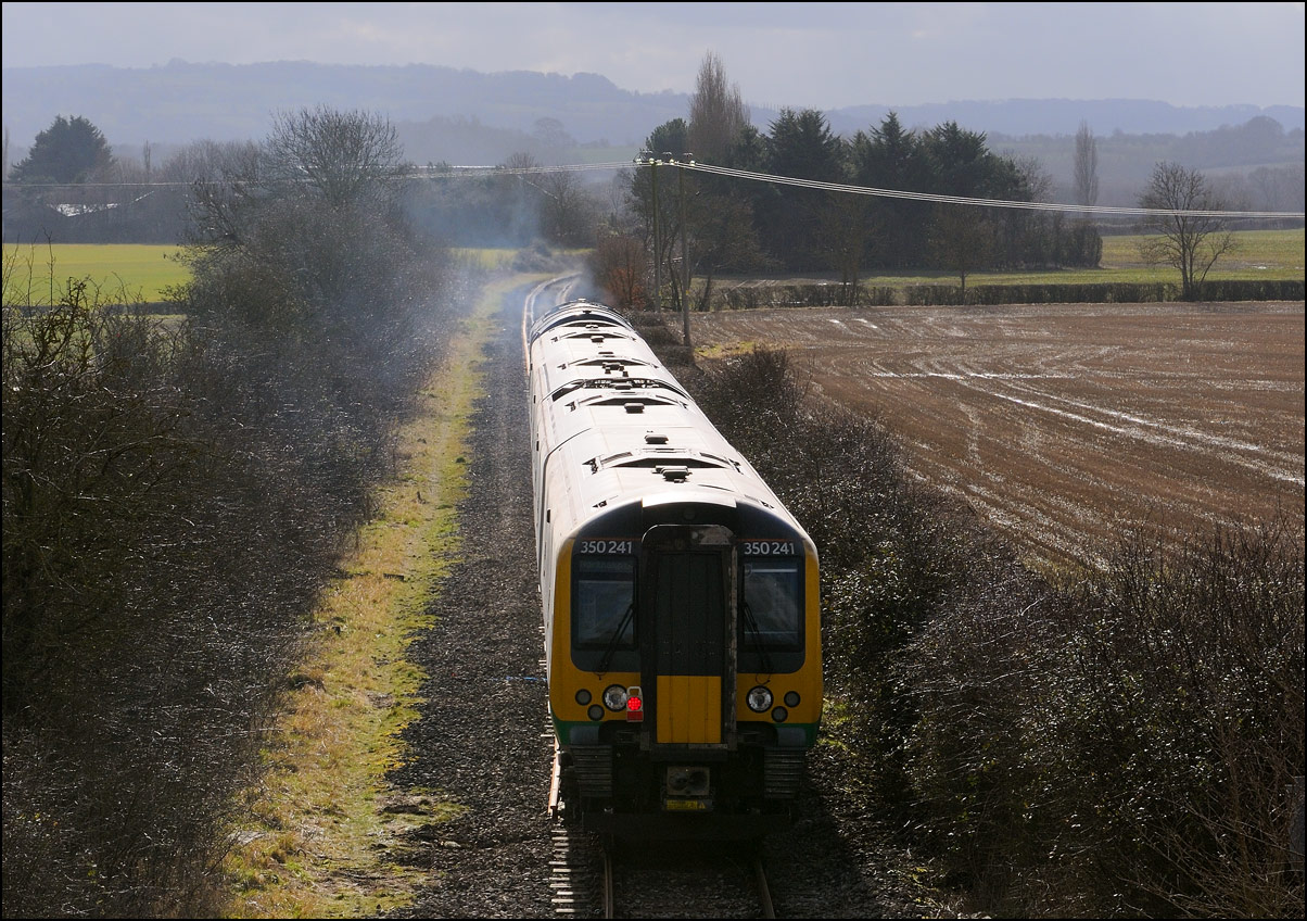 Any train longer than a locomotive and 4 coaches blocks the footpath over the public crossing at Long Marston which is annoying if the there is a delay with the gates into the site being opened, On this occasion all was well and I was able to take this shot of 350237 on 3 July 2025. |