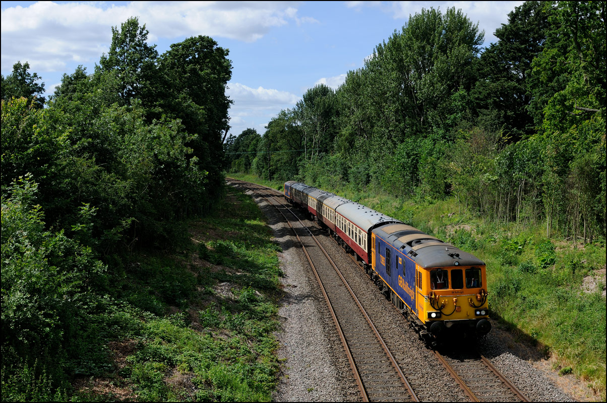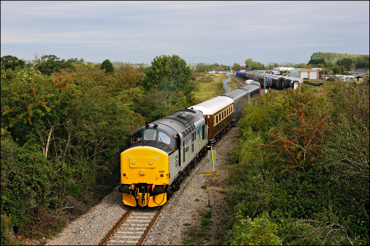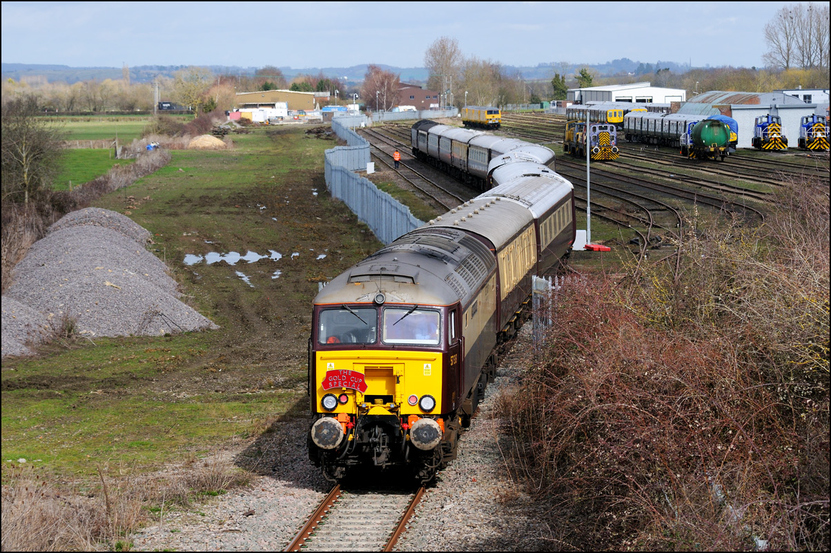 The train is seen here leaving the depot and joining the branch to Honeybourne where it will reverse once onto the Cotswold Line so that the Cromptons will lead towards Oxford. |