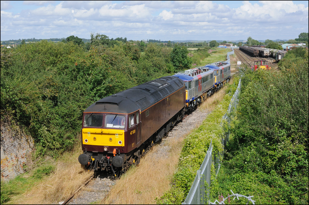 Another locomotive with her nameplates still attached is 47701, here seen in the company of 86226 and 20902. I had forgotten that this class 47 was in Long Marston so was pleased to get a photograph of her as I didn't see the arrival - I think she came in by road rather than in the consist of a rail stock move. |