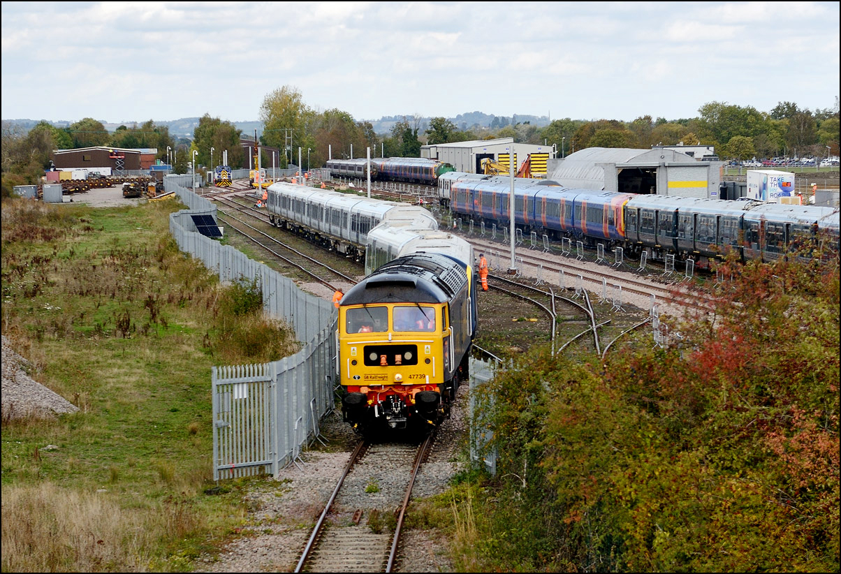 I don't often take this sort of shot but thought that the exhaust from 47739 made the scene at Long Marston on 1 October 2025 a bit more interesting. With imagination it could almost seem that 701059 was in a bizarre push-pull situation! |