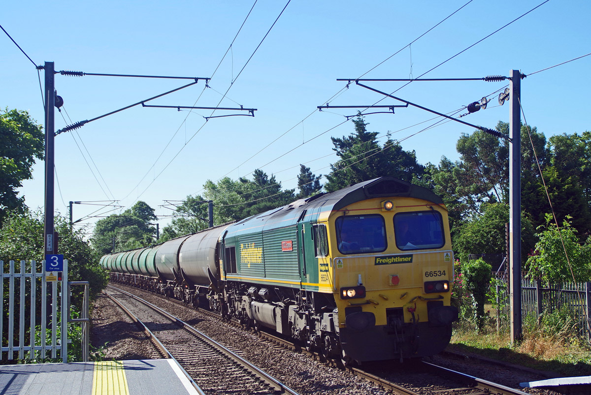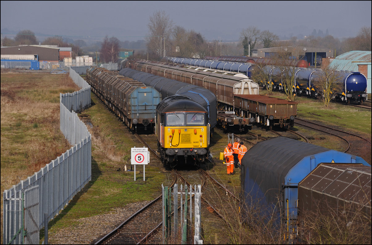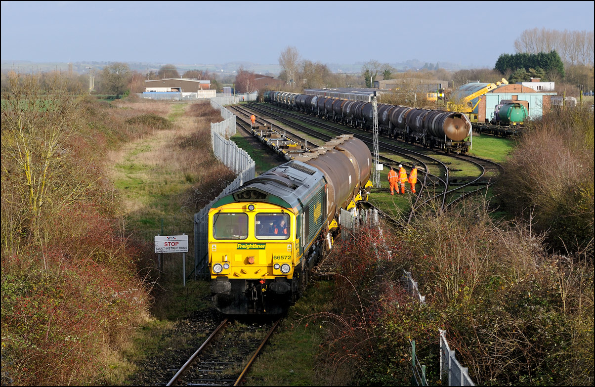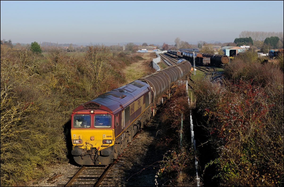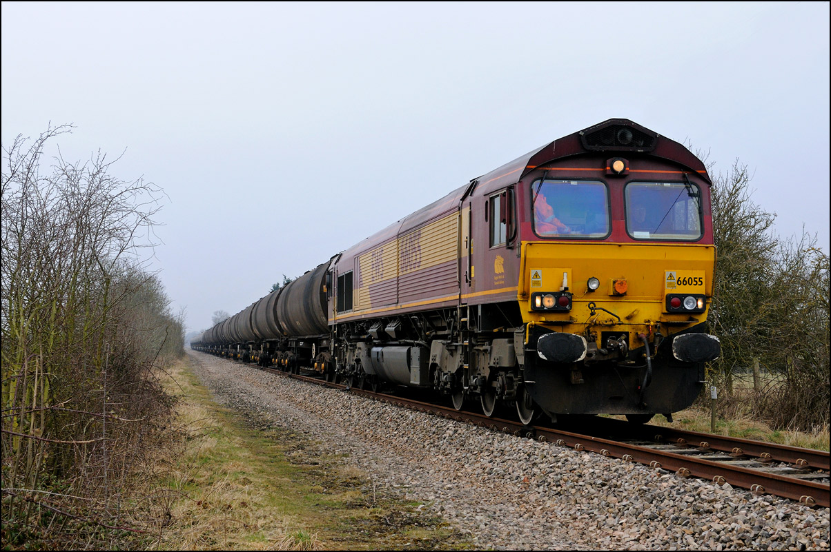 The sun finally appeared just as 66531 was ready to leave the exchange sidings at Long Marston. The driver very kindly brought his locomotive forward at low speed to allow the small gallery the chance for a well-lit shot of this very rare event. |