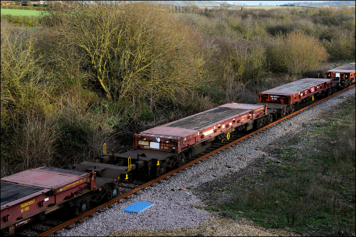 After reversal at Honeybourne North Junction on 10 December 2024, 37510 led 458531, barriers and 37901 along the Long Marston branch towards the hut in which the single line token is kept. I fixed my phone to the roadbridge with a bendy mini-tripod and shot this piece of video as 5Q99 passed by with some traffic noise from the road. |