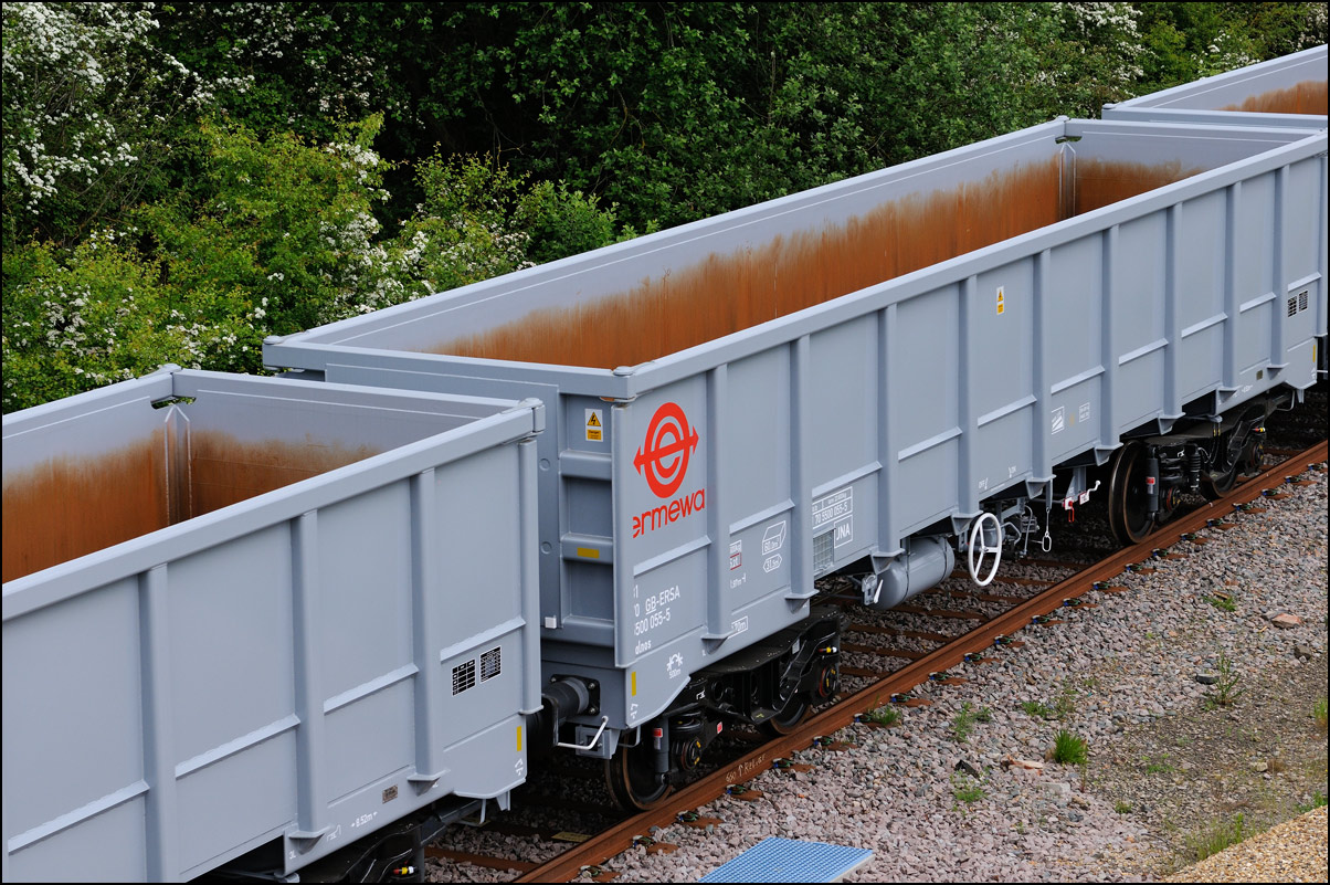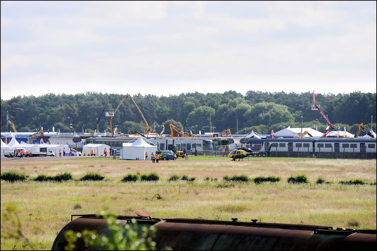 This was the view of 93001 with 37608 I had in mind on 17 June 2024 and it was good that the sun stayed out for it despite there being a lot of cloud blowing around. I tried to shoot a short piece of video as 37608 took 93001 into the yard but the bright sun was shining on my 'phone screen which made the touch controls awkward to see. For some reason several class 701 EMUs have been moved from the sidings near the road to others nearer the event site with some old stone hoppers having been shifted across. |