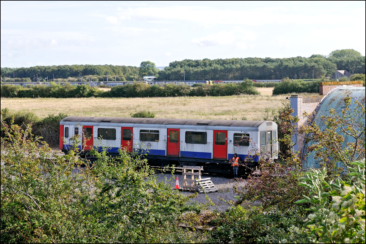 After a very slow and careful move across the new-looking pointwork at the end of road no.2 on 1 October 2025, 47739 with 701059 in tow moved onto the branch to Honeyhbourne. It's pity from a photographic point of view that the dense vegetation to th right of the line hasn't been cleared but at least it will provide a lot of food for the local birdlife over the winter. |