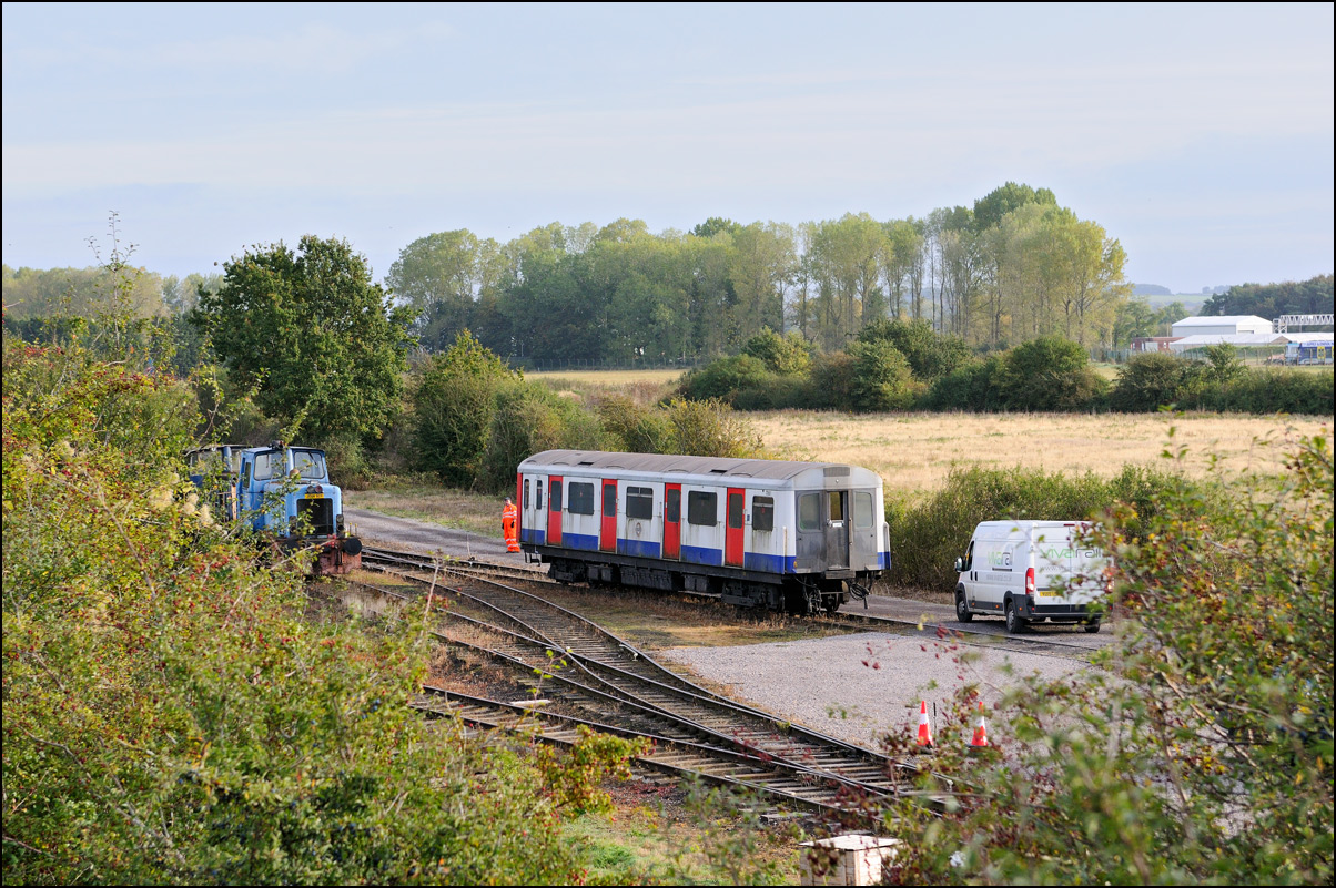 Once the 47s had left the site for Gloucester, 12082 was tied onto the stock and made ready for the trip around the internal system. It is seen here across the field in a picture taken from the roadside. |